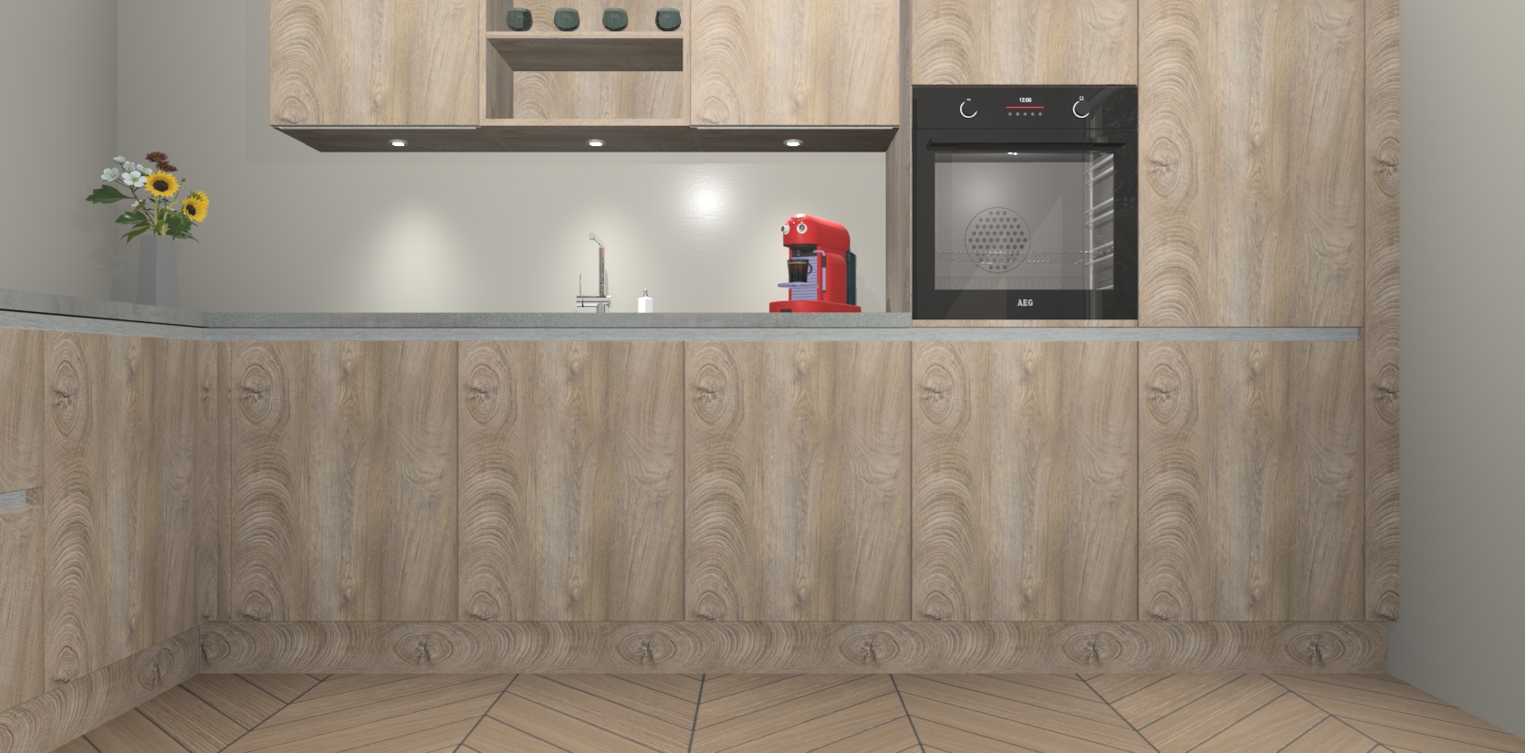 Inclusief plinten, stelpoten en werkblad