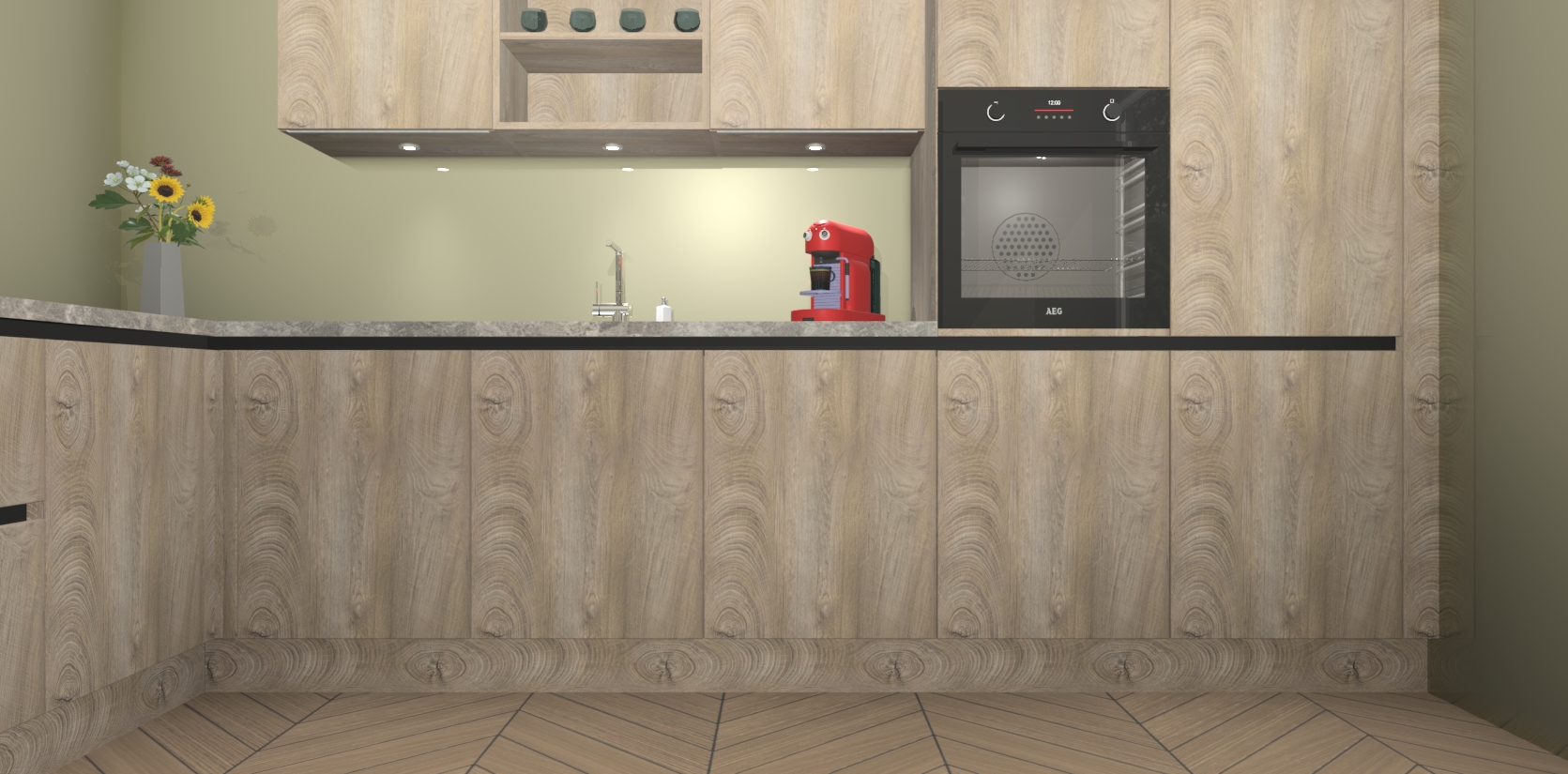 De Cantaro Eiken greeploze keuken Gotenburg is zo ontworpen dat u alle mogelijke vormen van opslagruimte kunt genieten. Bovendien heeft u meteen toegang tot vijf ingebouwde apparaten: een oven, inductiekookplaat, afzuigkap, vaatwasser en koelkast. Gewoon upgraden naar AEG na bestelling? Dit kan heel gemakkelijk worden geregeld. De deuren sluiten zacht dankzij zachtsluitende scharnieren en ze houden warmte vast terwijl ze uitzonderlijk stil blijven wanneer ze worden geopend of gesloten.
