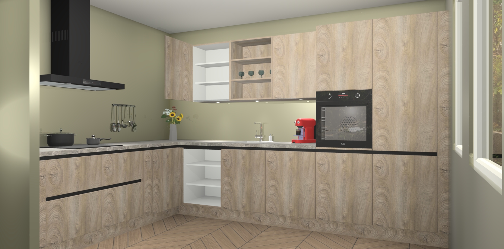 - Bij een hoekwerkblad zijn de hoeken in gevreesd en op maat gemaakt