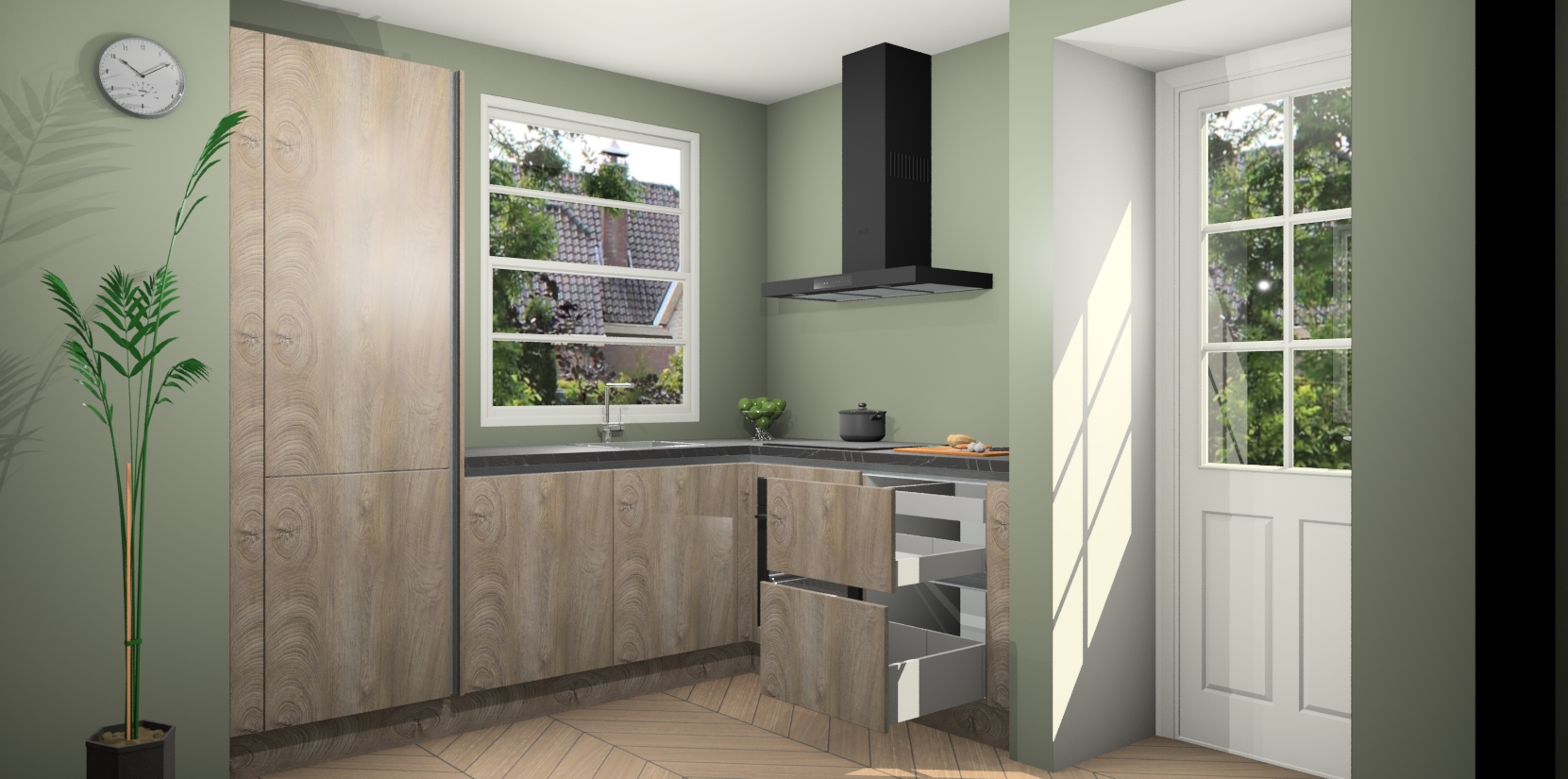 Wilt u een echte aanwinst voor uw keuken, maar bent u op zoek naar iets specialers dan de standaardkeukens? Kies dan voor de Cantaro Eiken greeploze keuken Harbin! Dit prachtige hoekkeukenontwerp geeft u alle ruimte om optimaal te genieten van heerlijk koken. Het uitmuntende afwerkingsniveau, de fraaie houtstructuur en de sfeervolle zwarte grepen maken van de Cantaro Eiken greeploze keuken Harbin de perfecte keuze voor zowel enthousiaste thuiskoks als design-minded interieurliefhebbers.