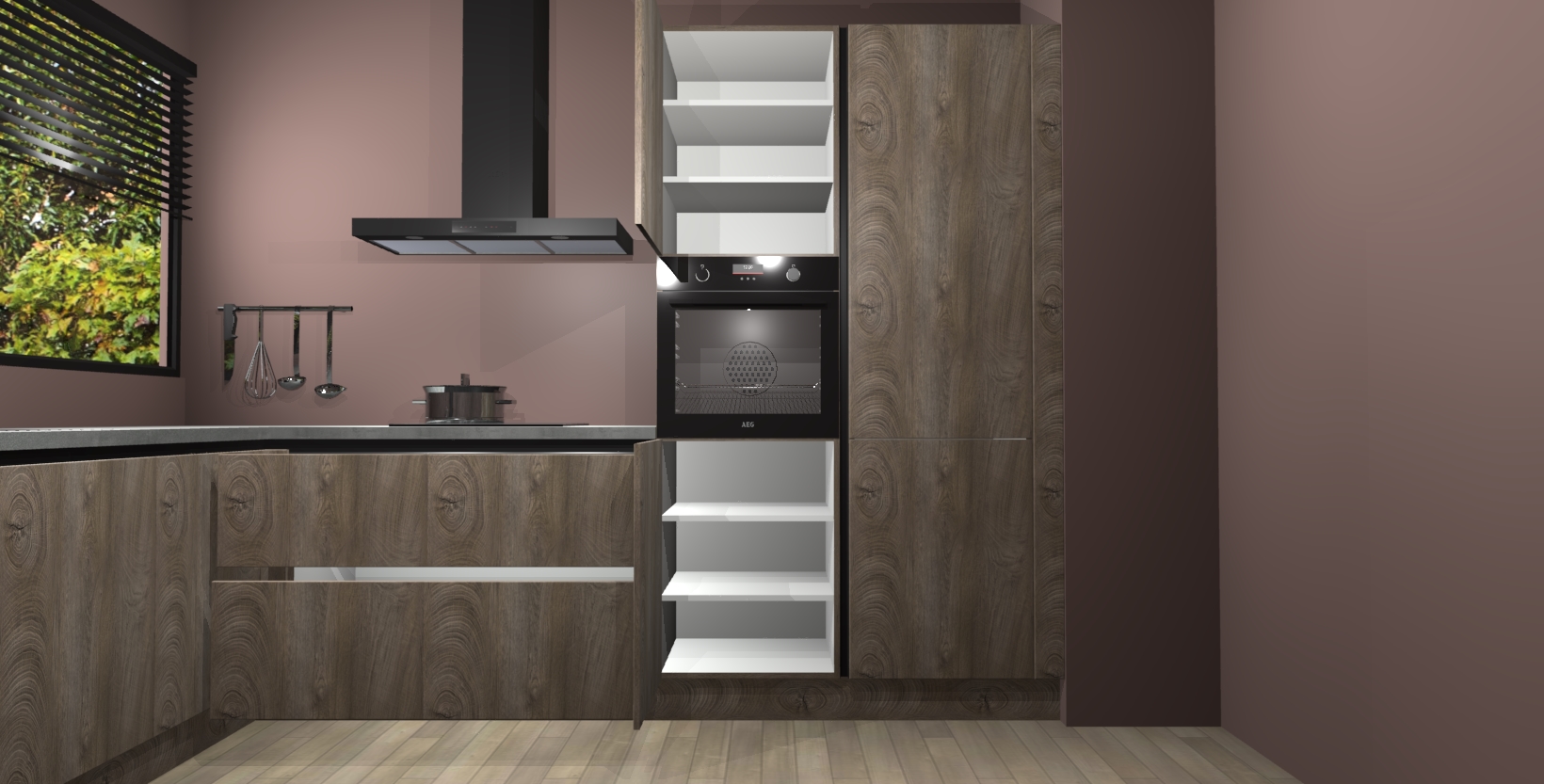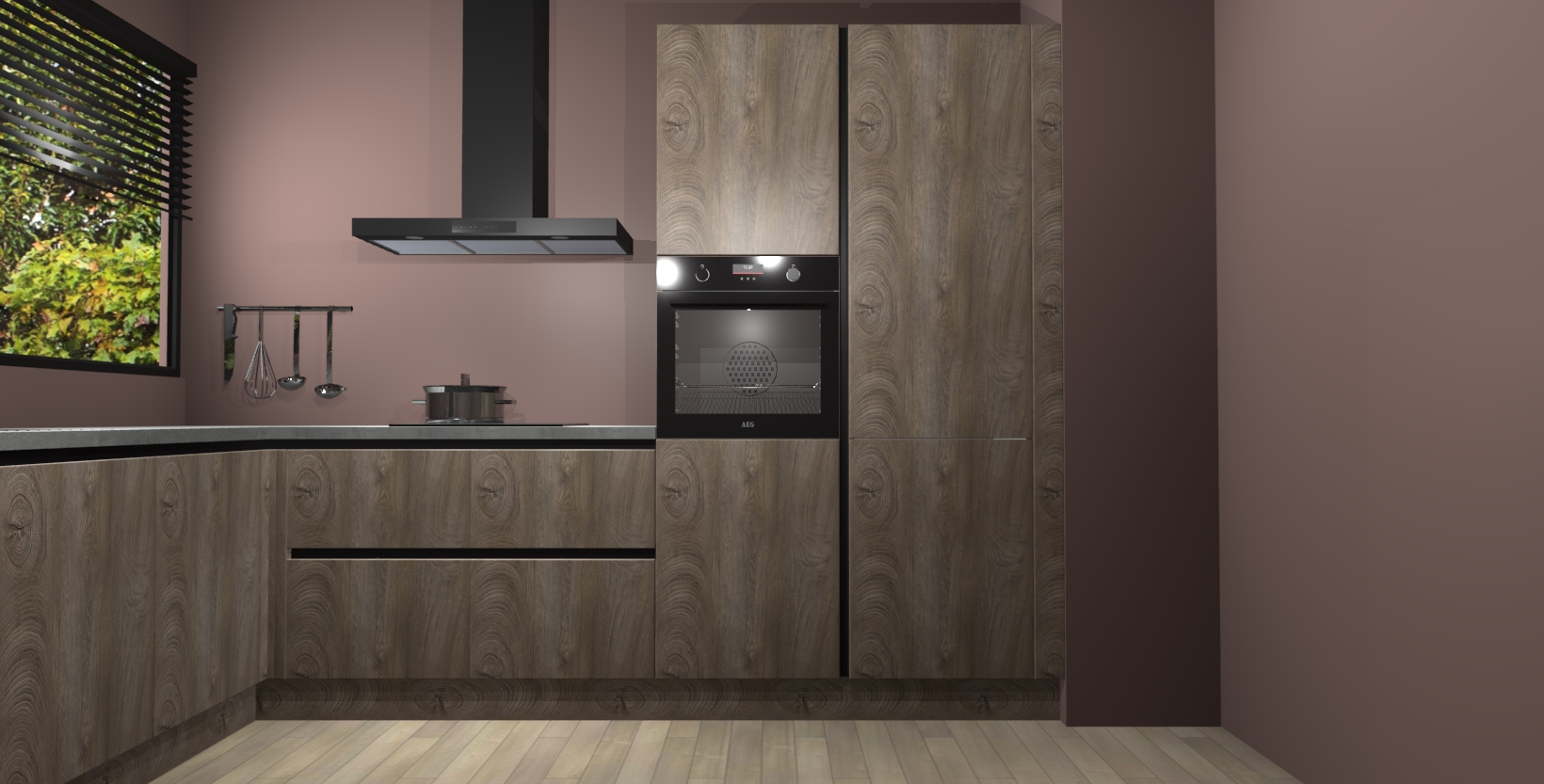Met een modern, tijdloos design en ruime opslagruimte, zult u zich in no-time thuis voelen in uw nieuwe keuken. Uw leven wordt eenvoudiger met de soft-close deuren die voor het ultieme stille comfort zorgen - geen geluid dat u stoort terwijl u kookt. Ook is de keuken voorzien van 5 ingebouwde apparaten: een oven, inductie kookplaat, afzuigkap, vaatwasser en koelkast. Deze kunnen gemakkelijk na bestelling worden bijgewerkt naar AEG - waardoor uw luxe ervaring compleet is.