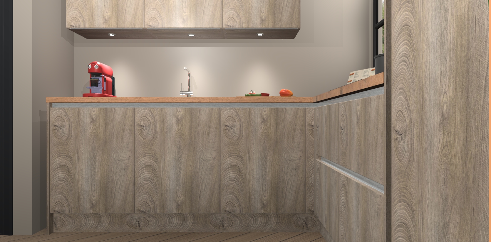 Inclusief plinten, stelpoten en werkblad