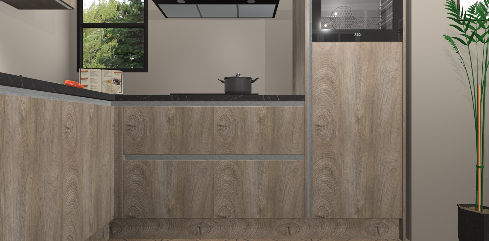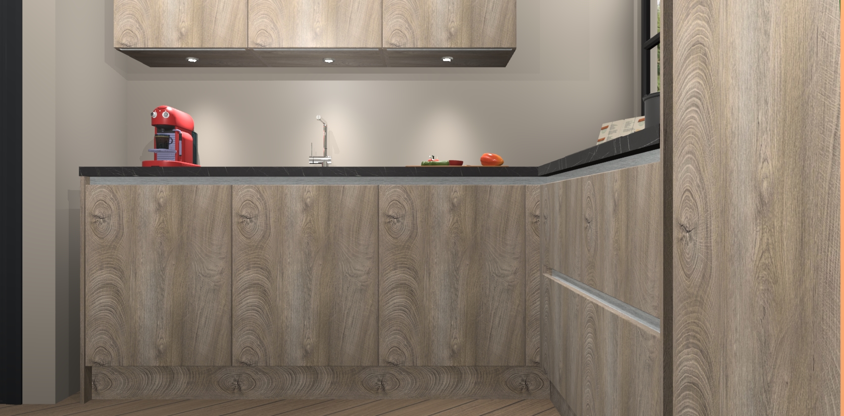 Inclusief plinten, stelpoten en werkblad