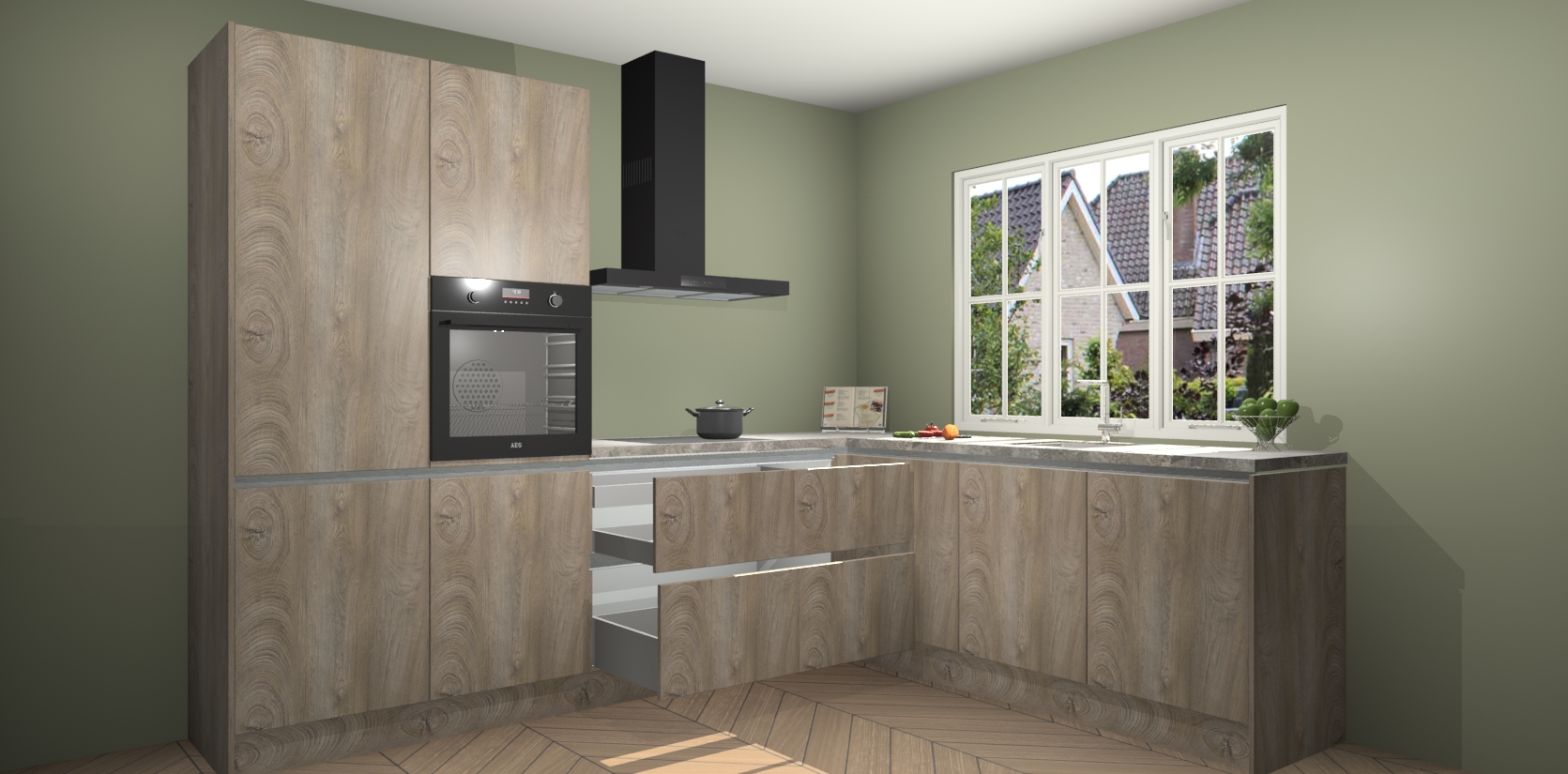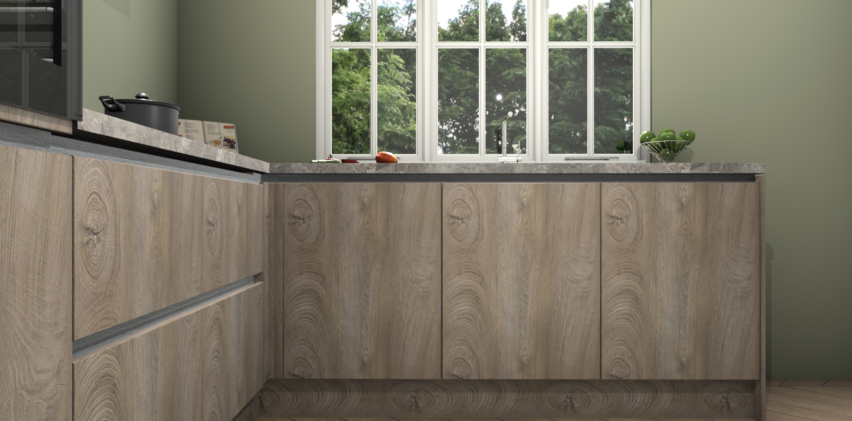 Heeft u genoeg van dezelfde keukenontwerpen die de markt overspoelen? Dan is de Cantaro Eiken greeploze keuken Kazan de juiste keuze voor u! Deze prachtige hoekkeuken heeft een modern en tijdloos design dat een elegant tintje geeft aan uw ruimte.