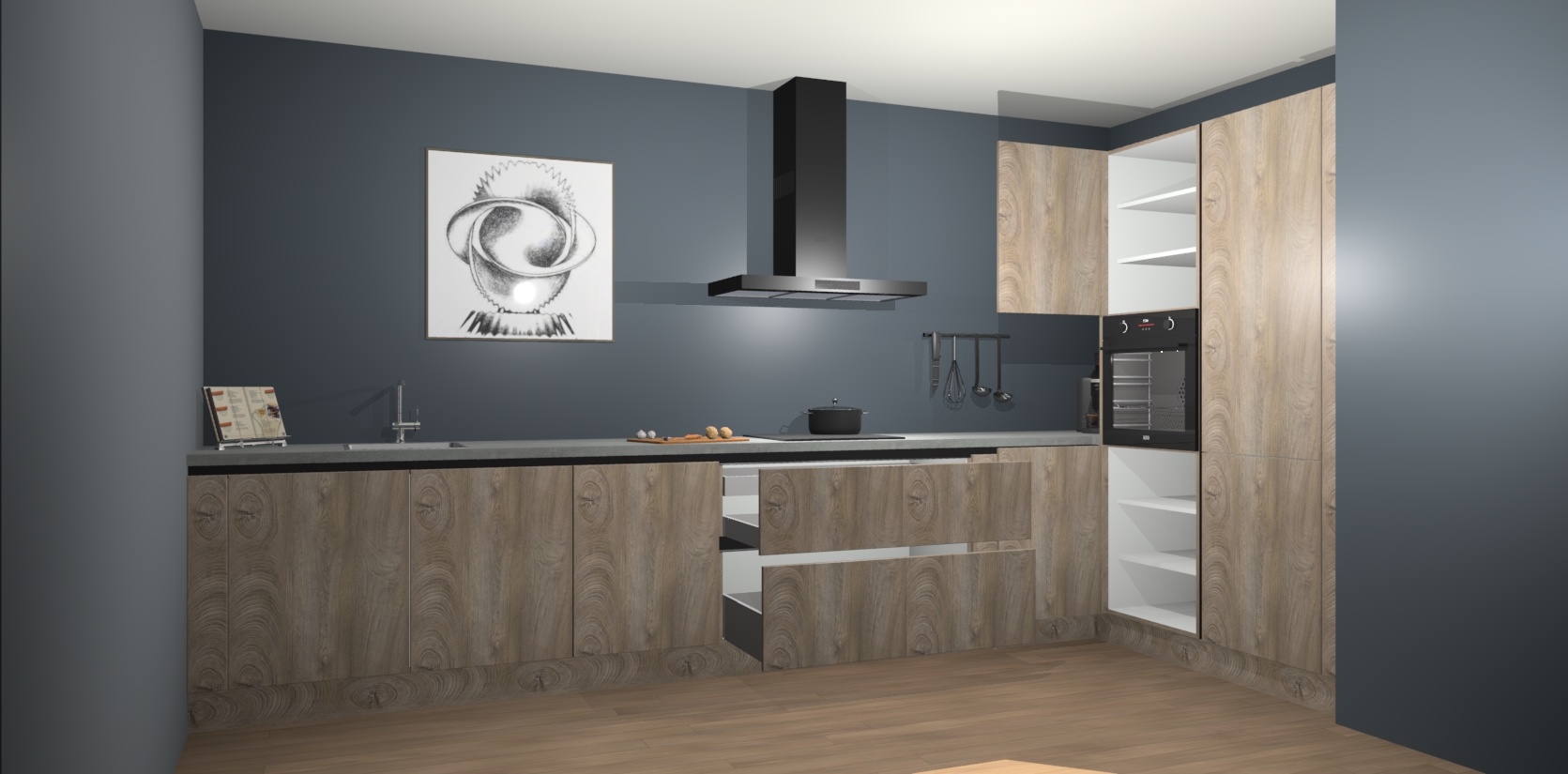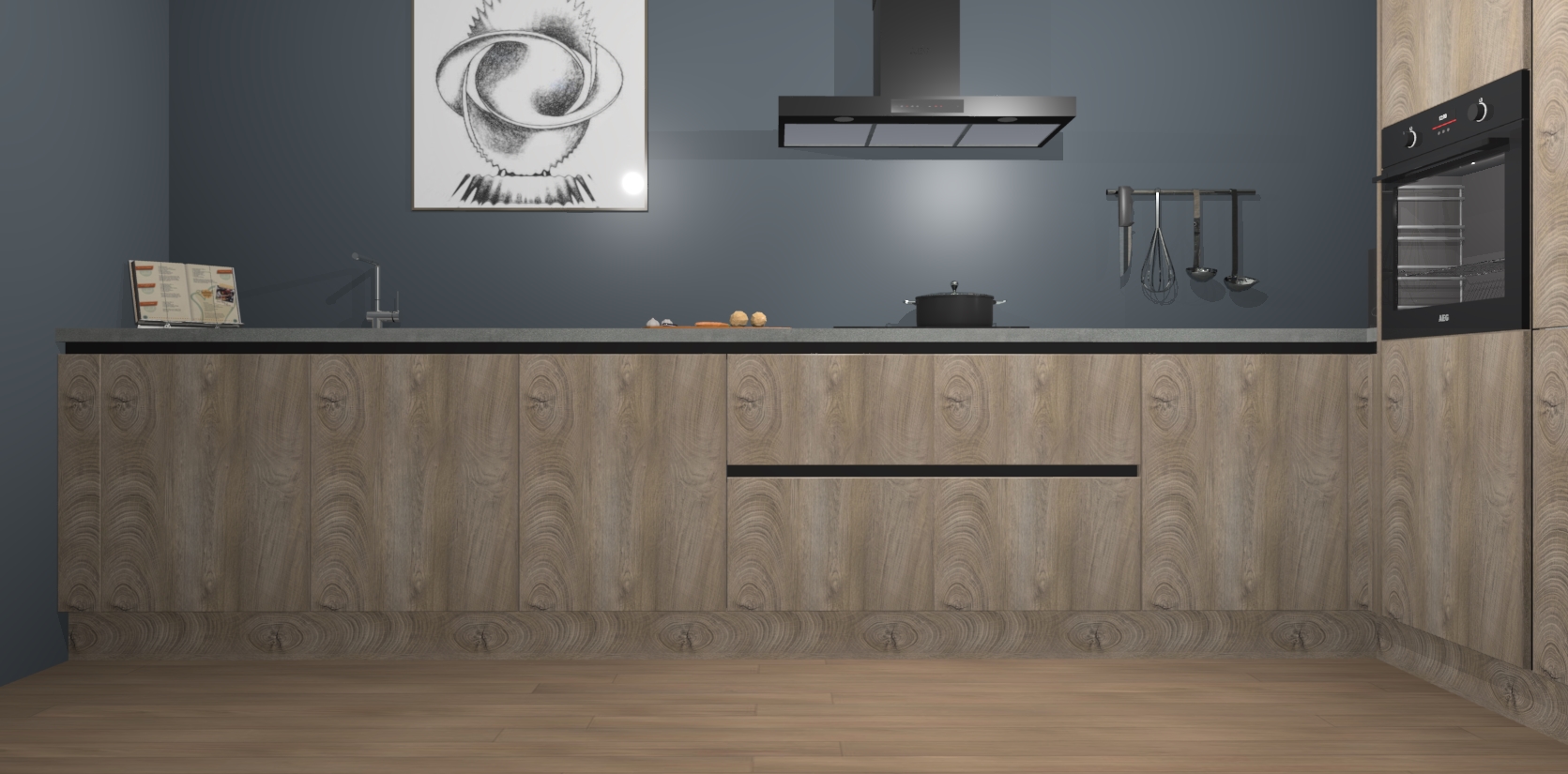 Welkom bij de Cantaro Eiken greeploze keuken Khao Lak. Deze prachtige keuken zal de komende jaren het middelpunt van de belangstelling in uw huis zijn. Uitgerust met vijf inbouwapparaten komt u nooit kookgereedschap tekort. Bovendien geeft de warme houtlook elke ruimte een uitnodigende en tijdloze uitstraling.