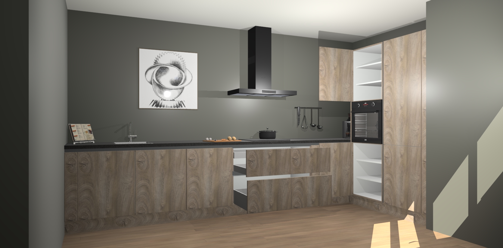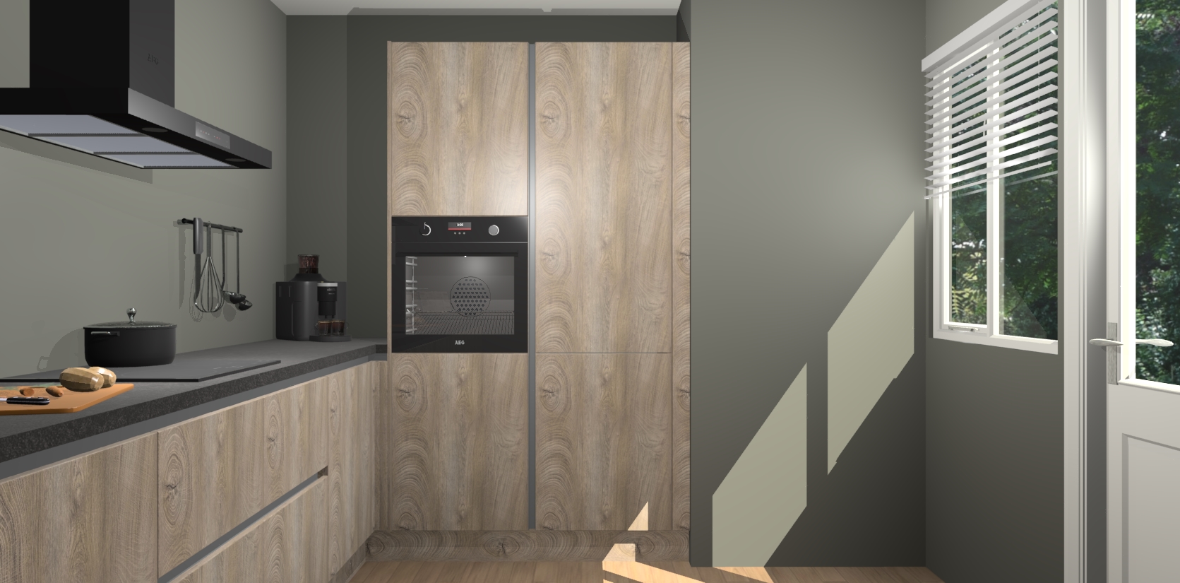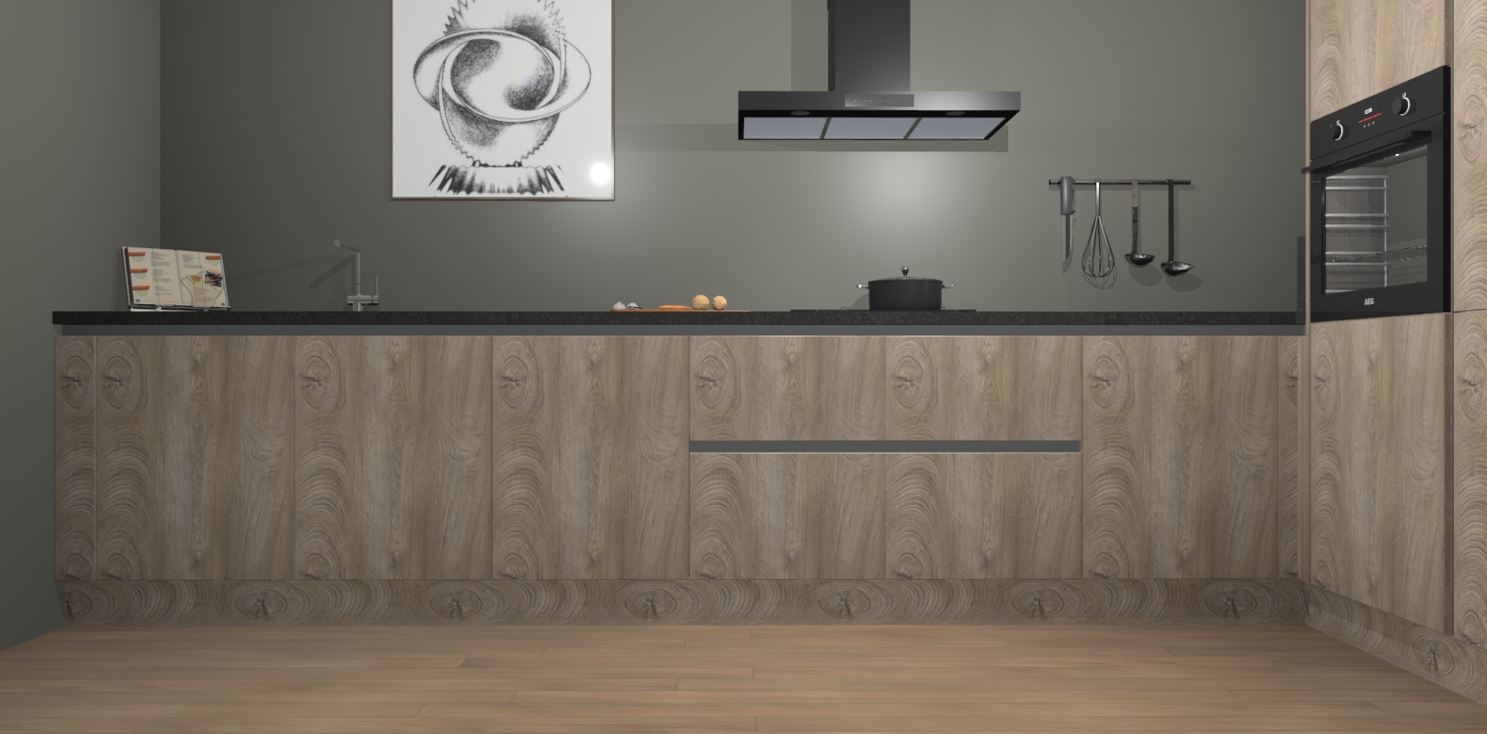Welkom bij de Cantaro Eiken greeploze keuken Khao Lak. Deze prachtige keuken zal de komende jaren het middelpunt van de belangstelling in uw huis zijn. Uitgerust met vijf inbouwapparaten komt u nooit kookgereedschap tekort. Bovendien geeft de warme houtlook elke ruimte een uitnodigende en tijdloze uitstraling.