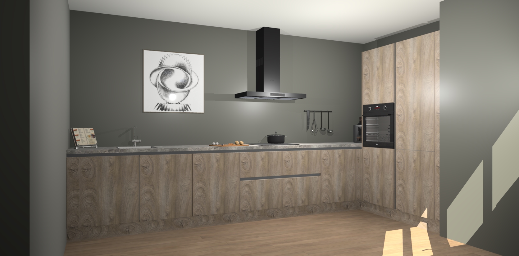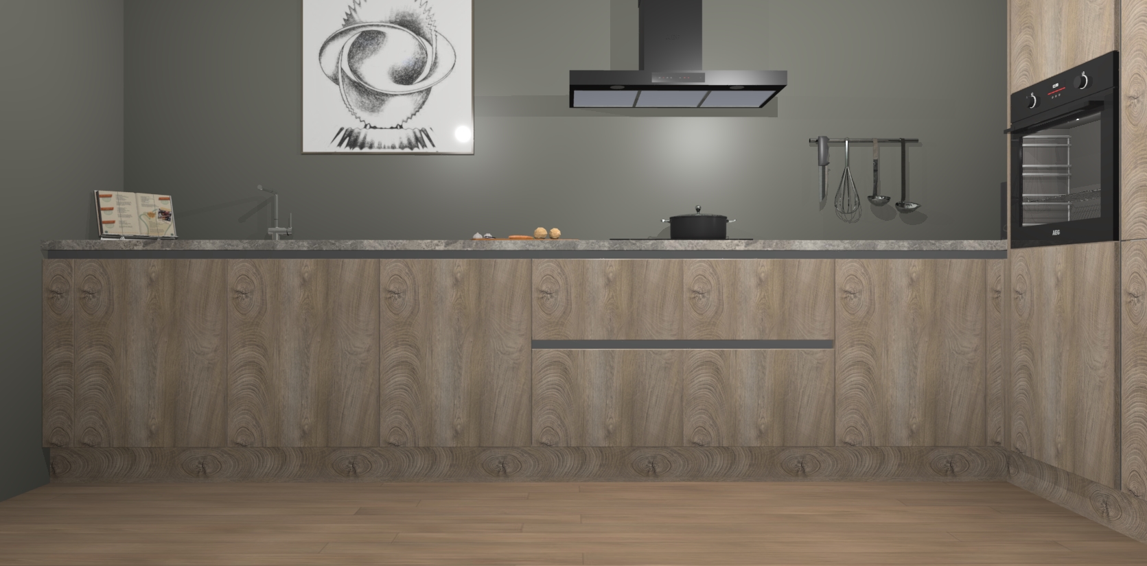 Welkom bij de Cantaro Eiken greeploze keuken Khao Lak. Deze prachtige keuken zal de komende jaren het middelpunt van de belangstelling in uw huis zijn. Uitgerust met vijf inbouwapparaten komt u nooit kookgereedschap tekort. Bovendien geeft de warme houtlook elke ruimte een uitnodigende en tijdloze uitstraling.