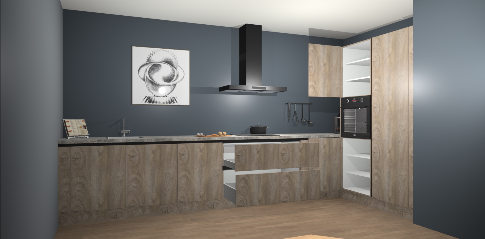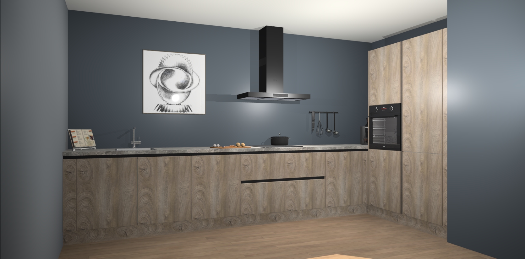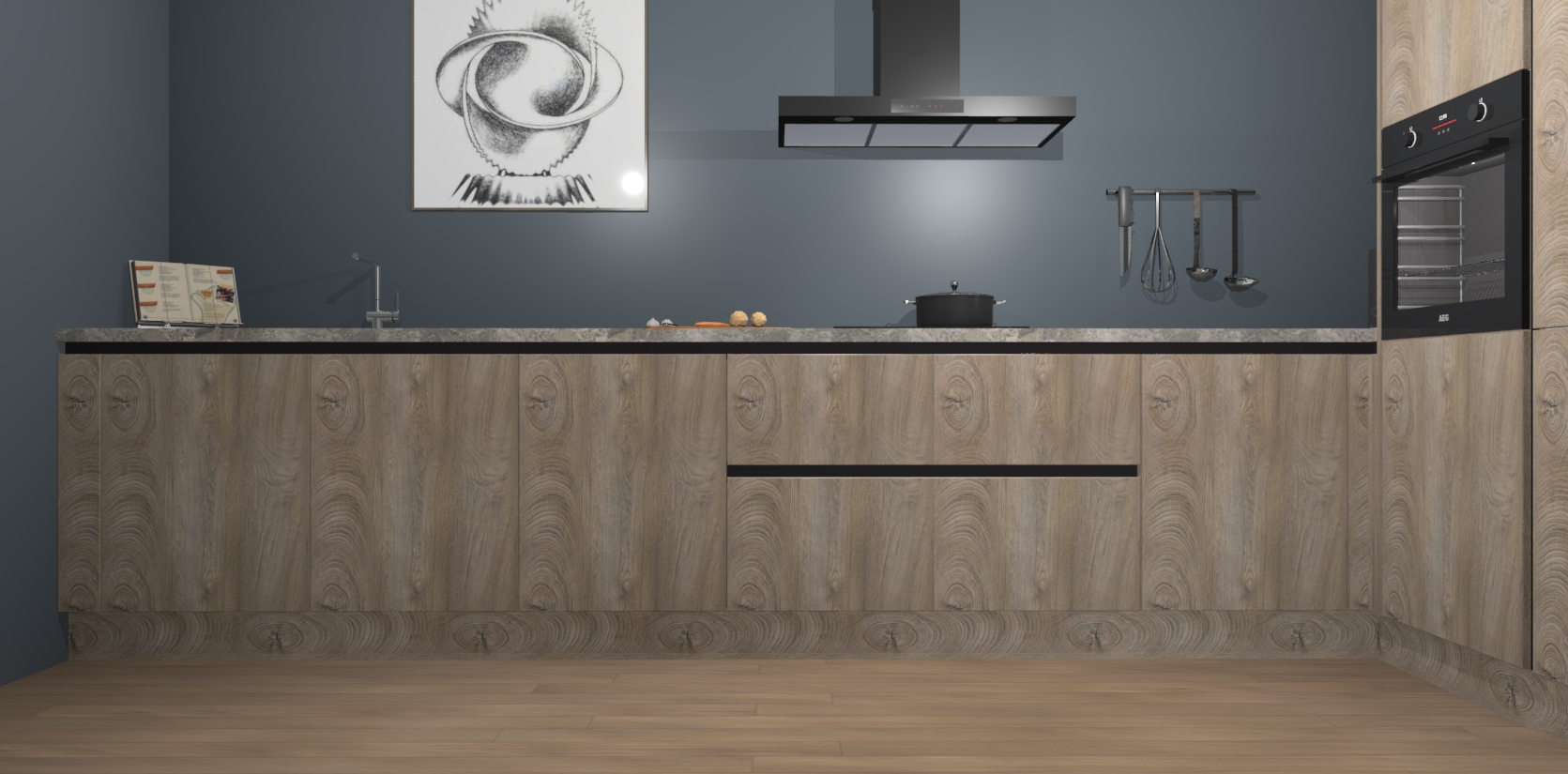 Welkom bij de Cantaro Eiken greeploze keuken Khao Lak. Deze prachtige keuken zal de komende jaren het middelpunt van de belangstelling in uw huis zijn. Uitgerust met vijf inbouwapparaten komt u nooit kookgereedschap tekort. Bovendien geeft de warme houtlook elke ruimte een uitnodigende en tijdloze uitstraling.