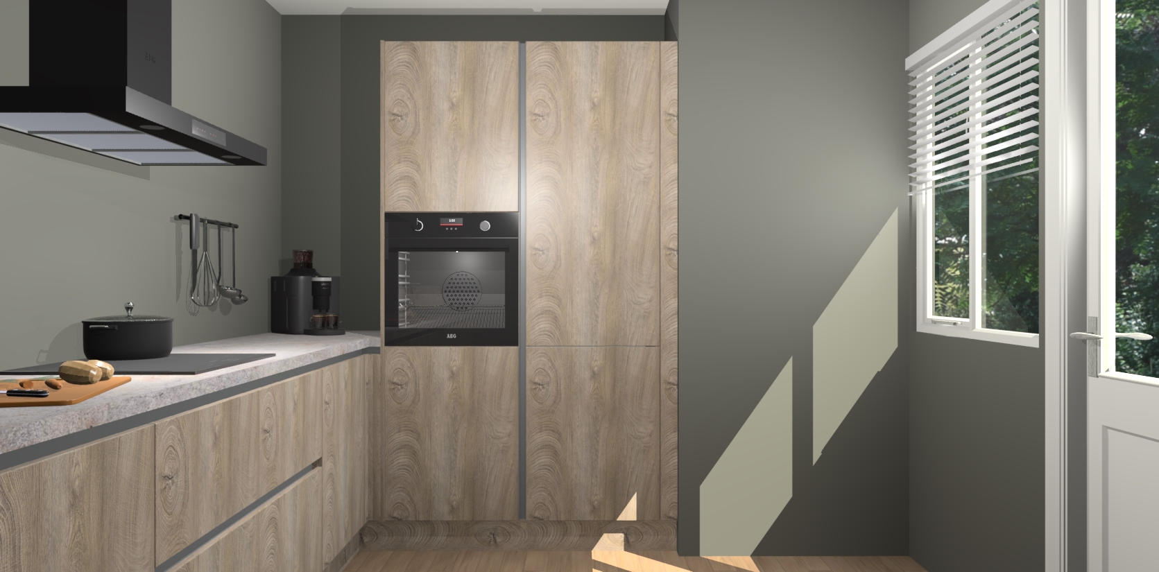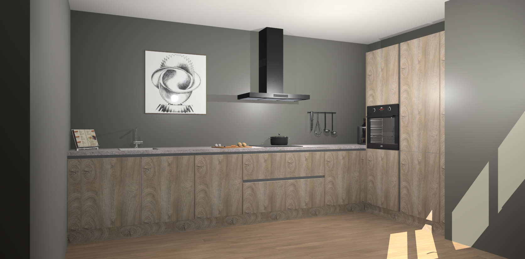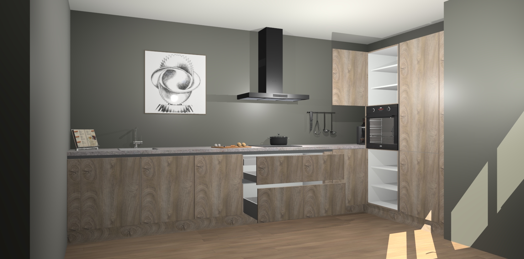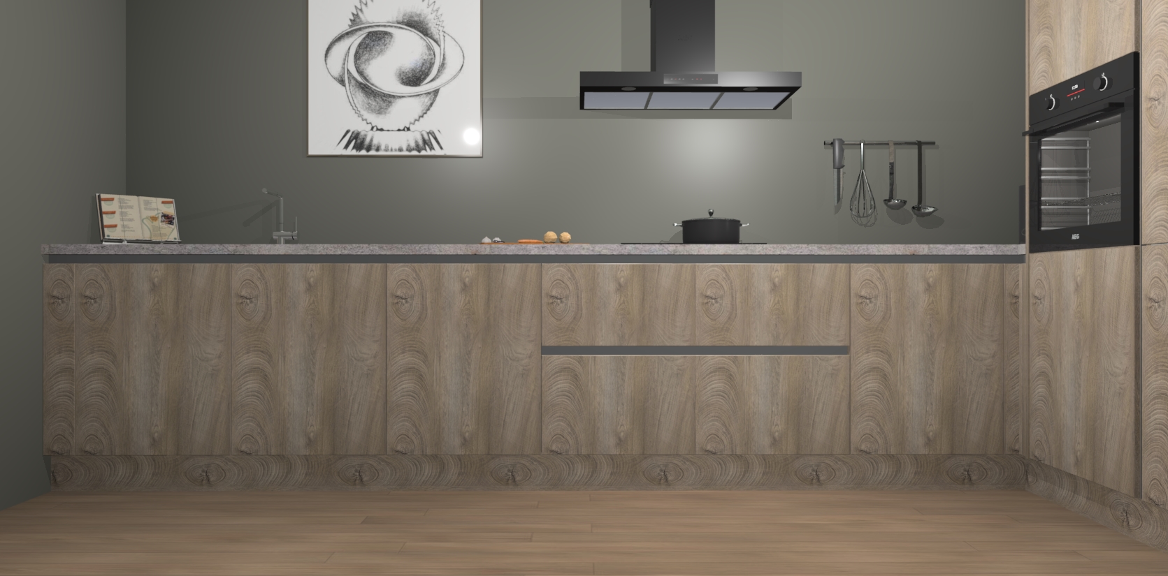 Welkom bij de Cantaro Eiken greeploze keuken Khao Lak. Deze prachtige keuken zal de komende jaren het middelpunt van de belangstelling in uw huis zijn. Uitgerust met vijf inbouwapparaten komt u nooit kookgereedschap tekort. Bovendien geeft de warme houtlook elke ruimte een uitnodigende en tijdloze uitstraling.