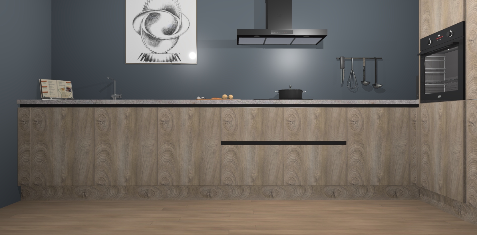 Welkom bij de Cantaro Eiken greeploze keuken Khao Lak. Deze prachtige keuken zal de komende jaren het middelpunt van de belangstelling in uw huis zijn. Uitgerust met vijf inbouwapparaten komt u nooit kookgereedschap tekort. Bovendien geeft de warme houtlook elke ruimte een uitnodigende en tijdloze uitstraling.
