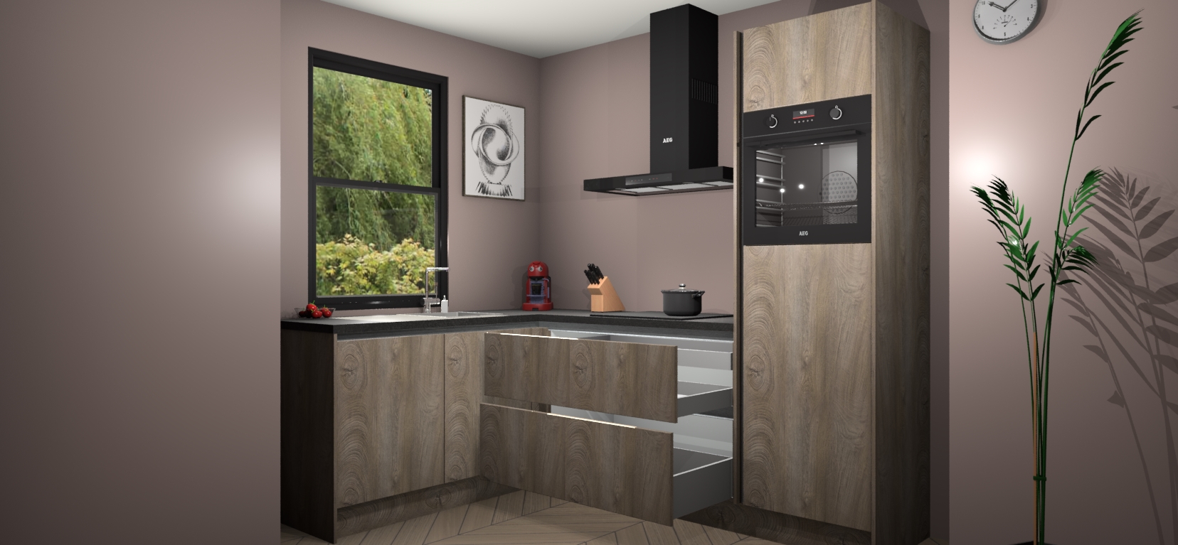 Deze prachtige hoekkeuken heeft alle benodigdheden om uw droomkook- en eetruimte compleet te maken. De Cantaro Eiken kasten bieden een echo van raffinement, terwijl de 5 inbouwapparaten genoeg opties bieden voor het bereiden van heerlijke maaltijden. De oven, inductiekookplaat, afzuigkap, vaatwasser en koelkast zorgen ervoor dat u tijd in de keuken zo efficiënt mogelijk verloopt, terwijl ze ook dat extra vleugje luxe bieden.