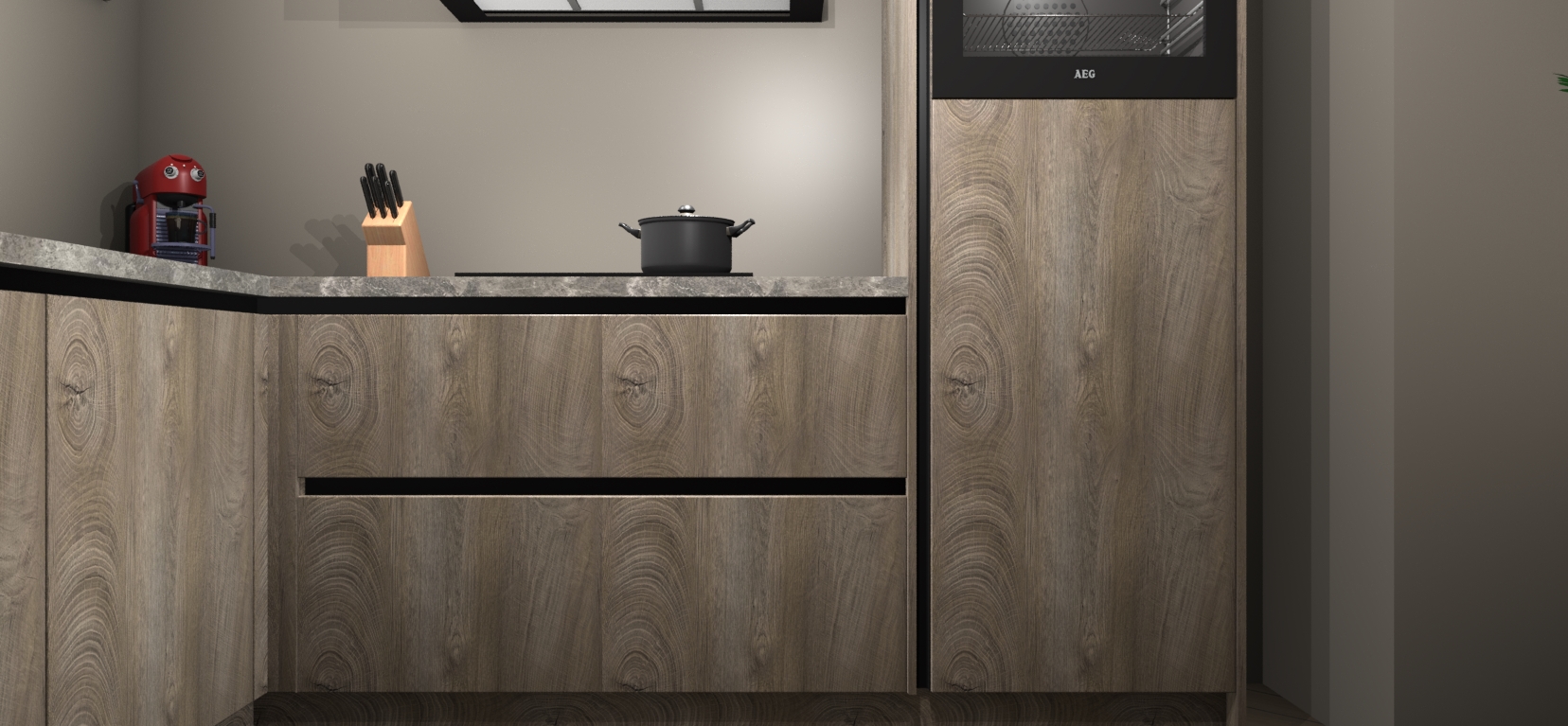 Inclusief plinten, stelpoten en werkblad