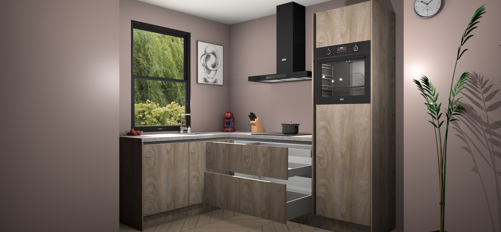 Deze prachtige hoekkeuken heeft alle benodigdheden om uw droomkook- en eetruimte compleet te maken. De Cantaro Eiken kasten bieden een echo van raffinement, terwijl de 5 inbouwapparaten genoeg opties bieden voor het bereiden van heerlijke maaltijden. De oven, inductiekookplaat, afzuigkap, vaatwasser en koelkast zorgen ervoor dat u tijd in de keuken zo efficiënt mogelijk verloopt, terwijl ze ook dat extra vleugje luxe bieden.