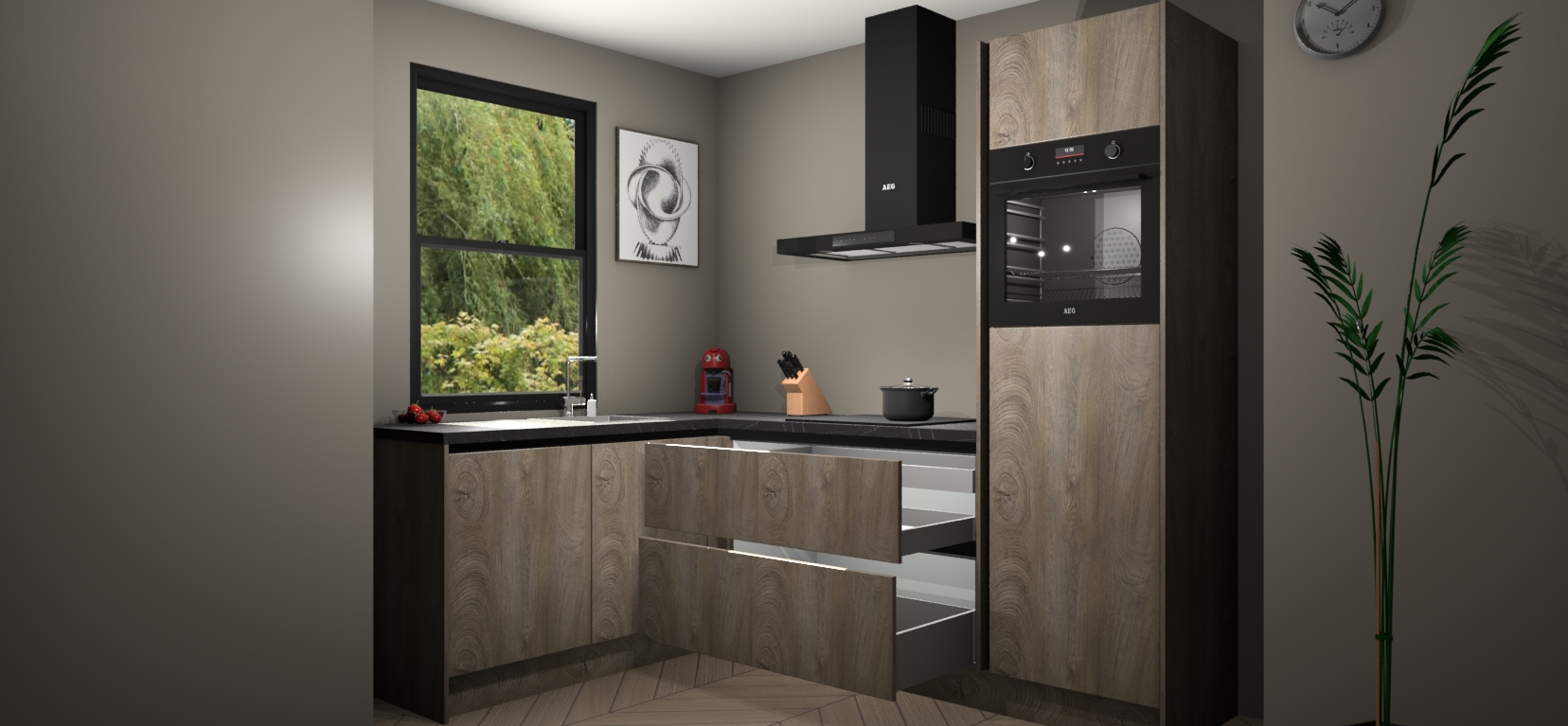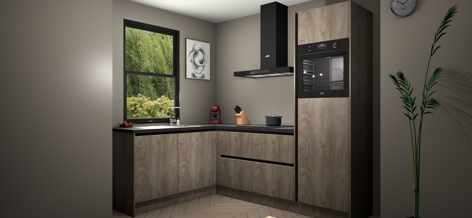 Deze prachtige hoekkeuken heeft alle benodigdheden om uw droomkook- en eetruimte compleet te maken. De Cantaro Eiken kasten bieden een echo van raffinement, terwijl de 5 inbouwapparaten genoeg opties bieden voor het bereiden van heerlijke maaltijden. De oven, inductiekookplaat, afzuigkap, vaatwasser en koelkast zorgen ervoor dat u tijd in de keuken zo efficiënt mogelijk verloopt, terwijl ze ook dat extra vleugje luxe bieden.