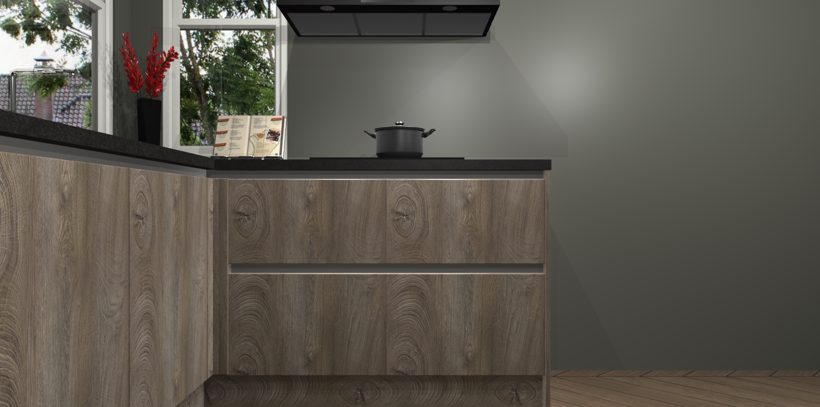 We hebben iets speciaals voor u: de Cantaro Eiken greeploze keuken Kotor. Het is een hoekkeuken die sfeer en warmte uitstraalt, en zijn hout-look geeft hem een unieke touch. Perfect voor elk huis!