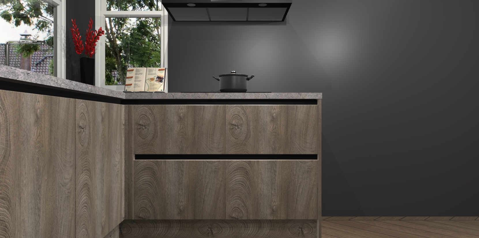 We hebben iets speciaals voor u: de Cantaro Eiken greeploze keuken Kotor. Het is een hoekkeuken die sfeer en warmte uitstraalt, en zijn hout-look geeft hem een unieke touch. Perfect voor elk huis!