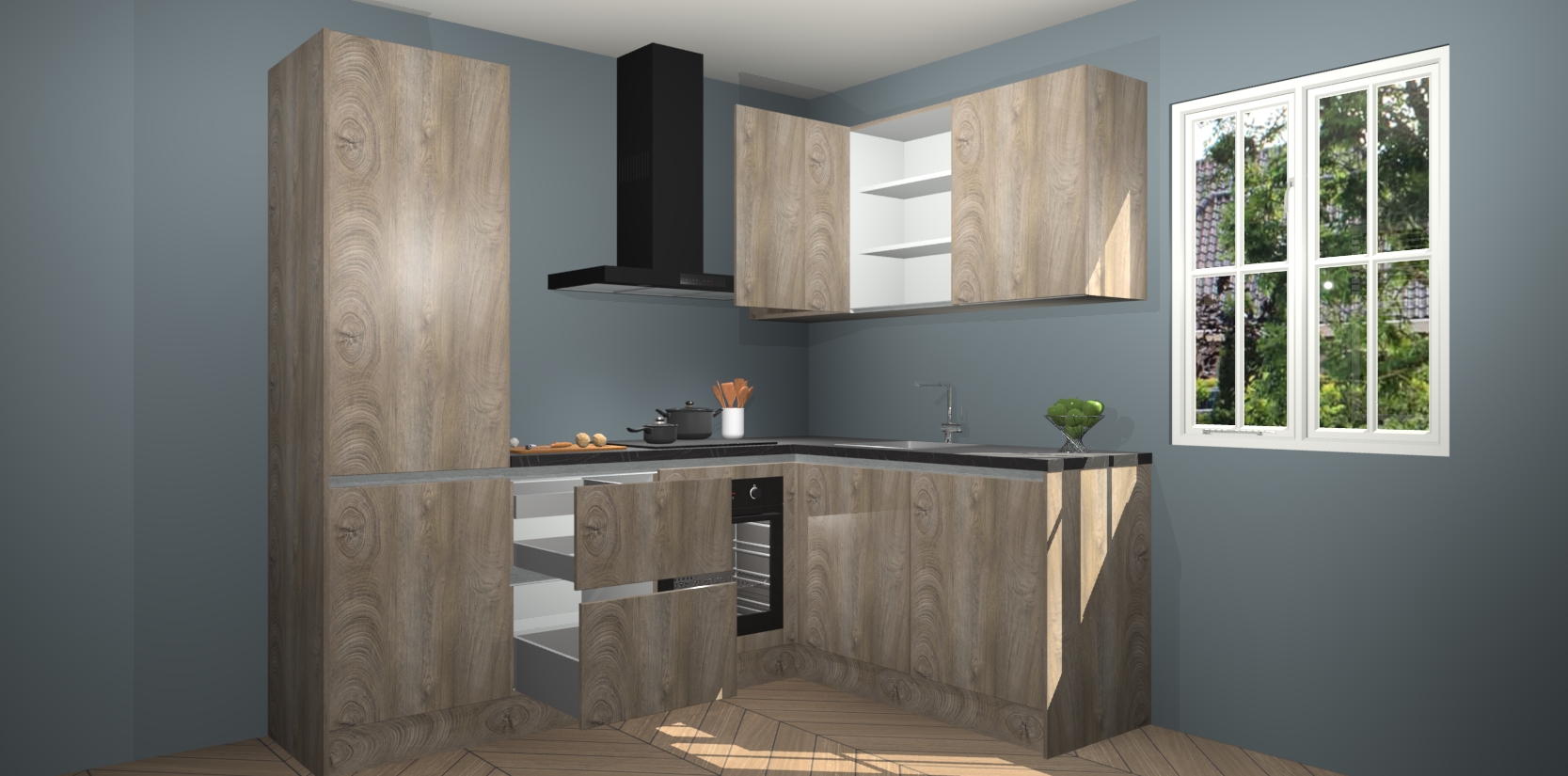Bestellen was nog nooit zo makkelijk en we leveren met slechts 7 weken; zodra de keuken arriveert staan de kasten voor gemonteerd klaar om er alles aan te doen dat u hem gemakkelijk zelf kunt installeren! Eén ding is zeker: met de Cantaro Eiken greeploze keuken Krakau slaagt u erin modischer, modernere keukens uit te rusten die tientallen jaren meegaan! Haal snel uw Cantaro Eiken greeploze keuken Krakau - of u nu net begint of al 'levenservaring' hebt in de keukendroomloopbaan - want dit topmodel van onze collectie wilt u absoluut niet missen.