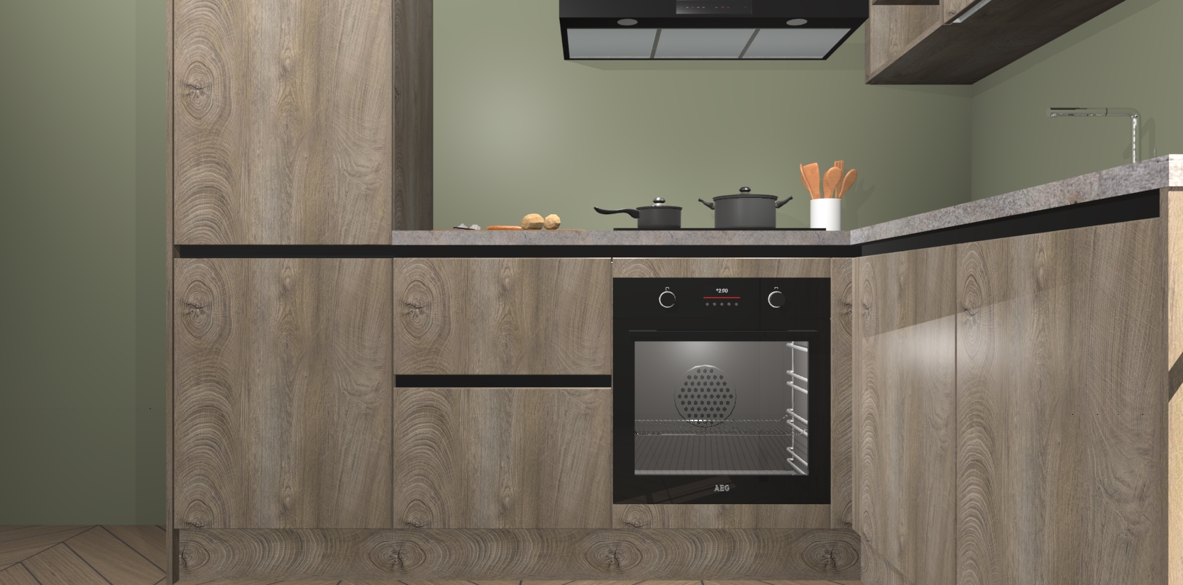 Dit model biedt u voldoende opbergruimte en vijf ingebouwde apparaten: een oven, inductiekookplaat, afzuigkap, vaatwasser en koelkast. Deze apparaten kunnen gemakkelijk worden geüpgrade naar AEG nadat u besteld heeft. De verschillende laden en kastjes bevatten softclose-deuren waardoor ze gezellig dichtvallen met een geruststellend helemaal geruisloos geluid. En dat is nog niet alles! We garanderen ook dat de prijs altijd laag blijft - dus haal nu uw Cantaro Eiken greeploze keuken Krakau terwijl het kan.