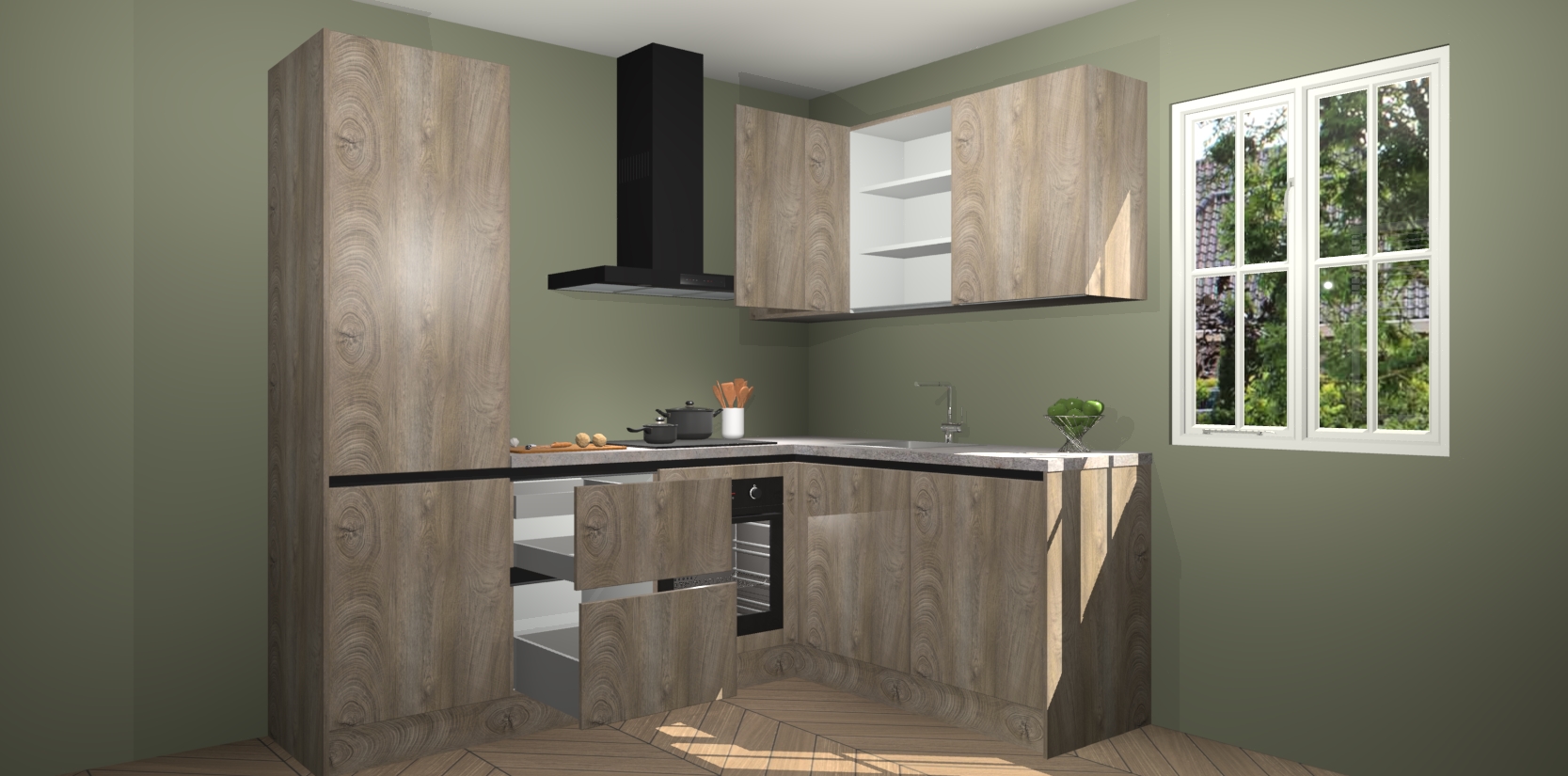 Bestellen was nog nooit zo makkelijk en we leveren met slechts 7 weken; zodra de keuken arriveert staan de kasten voor gemonteerd klaar om er alles aan te doen dat u hem gemakkelijk zelf kunt installeren! Eén ding is zeker: met de Cantaro Eiken greeploze keuken Krakau slaagt u erin modischer, modernere keukens uit te rusten die tientallen jaren meegaan! Haal snel uw Cantaro Eiken greeploze keuken Krakau - of u nu net begint of al 'levenservaring' hebt in de keukendroomloopbaan - want dit topmodel van onze collectie wilt u absoluut niet missen.