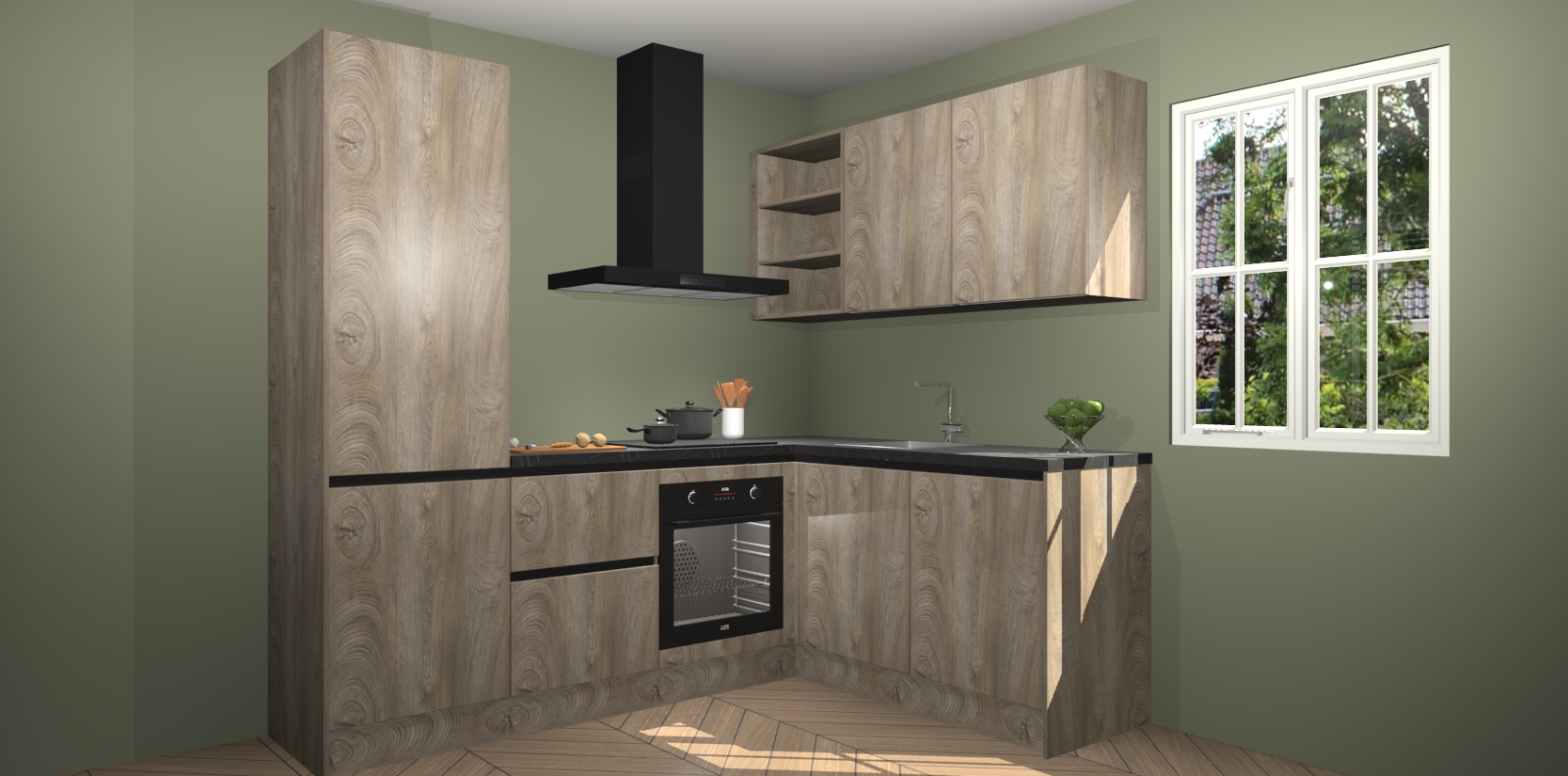 Dit model biedt u voldoende opbergruimte en vijf ingebouwde apparaten: een oven, inductiekookplaat, afzuigkap, vaatwasser en koelkast. Deze apparaten kunnen gemakkelijk worden geüpgrade naar AEG nadat u besteld heeft. De verschillende laden en kastjes bevatten softclose-deuren waardoor ze gezellig dichtvallen met een geruststellend helemaal geruisloos geluid. En dat is nog niet alles! We garanderen ook dat de prijs altijd laag blijft - dus haal nu uw Cantaro Eiken greeploze keuken Krakau terwijl het kan.