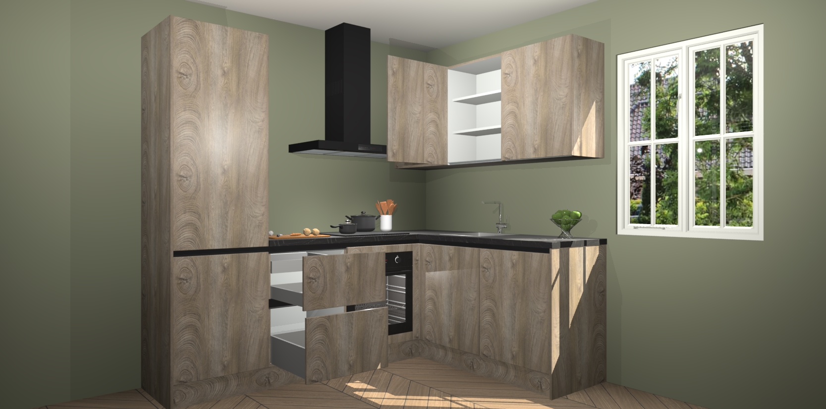 Bestellen was nog nooit zo makkelijk en we leveren met slechts 7 weken; zodra de keuken arriveert staan de kasten voor gemonteerd klaar om er alles aan te doen dat u hem gemakkelijk zelf kunt installeren! Eén ding is zeker: met de Cantaro Eiken greeploze keuken Krakau slaagt u erin modischer, modernere keukens uit te rusten die tientallen jaren meegaan! Haal snel uw Cantaro Eiken greeploze keuken Krakau - of u nu net begint of al 'levenservaring' hebt in de keukendroomloopbaan - want dit topmodel van onze collectie wilt u absoluut niet missen.