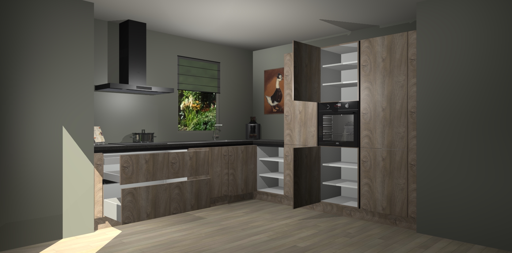 Welkom bij de Cantaro Eiken greeploze keuken Laos. Deze prachtige keuken zal de komende jaren het middelpunt van de belangstelling in uw huis zijn. Uitgerust met vijf inbouwapparaten komt u nooit kookgereedschap tekort. Bovendien geeft de warme houtlook elke ruimte een uitnodigende en tijdloze uitstraling.