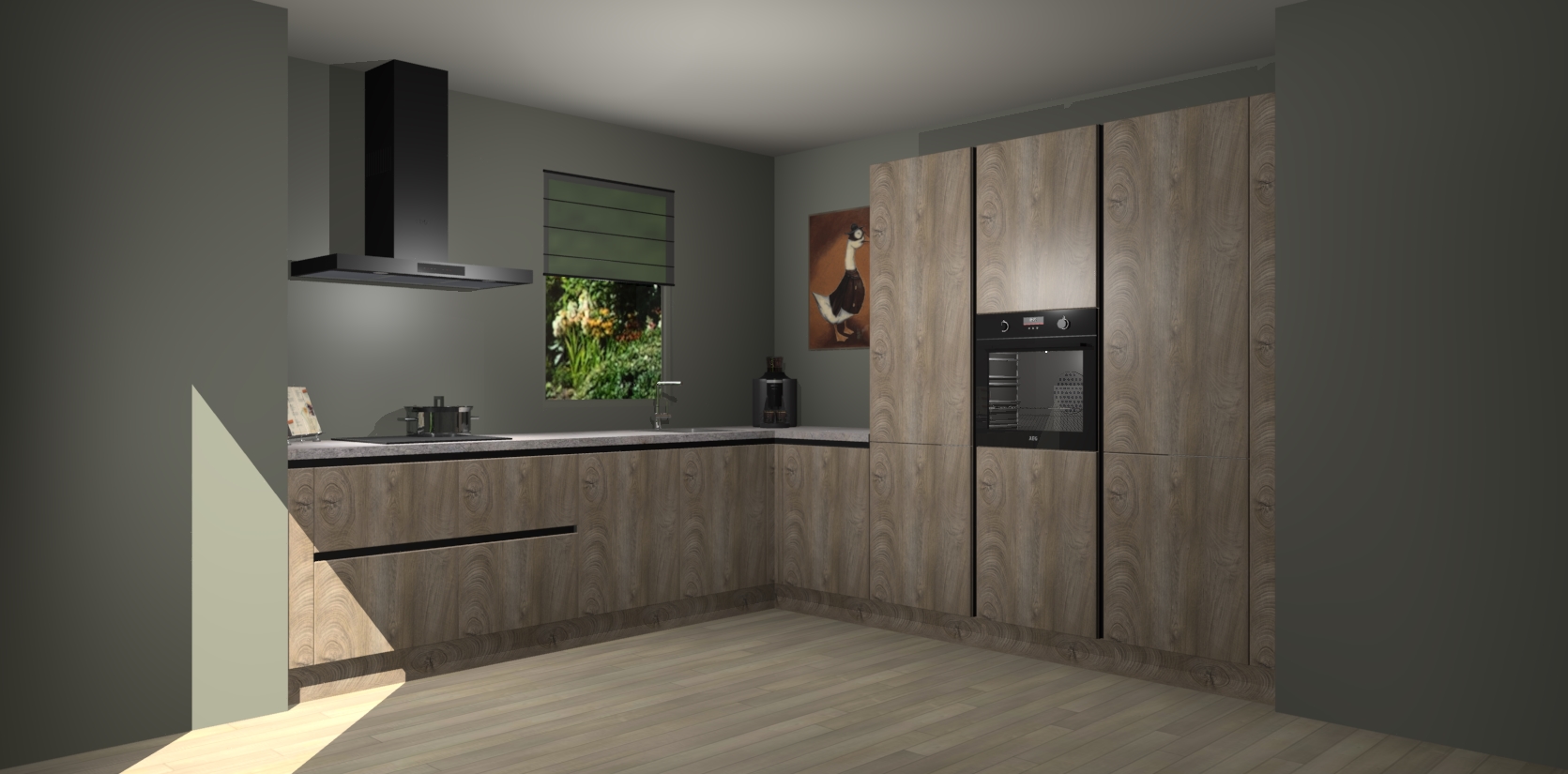 Welkom bij de Cantaro Eiken greeploze keuken Laos. Deze prachtige keuken zal de komende jaren het middelpunt van de belangstelling in uw huis zijn. Uitgerust met vijf inbouwapparaten komt u nooit kookgereedschap tekort. Bovendien geeft de warme houtlook elke ruimte een uitnodigende en tijdloze uitstraling.