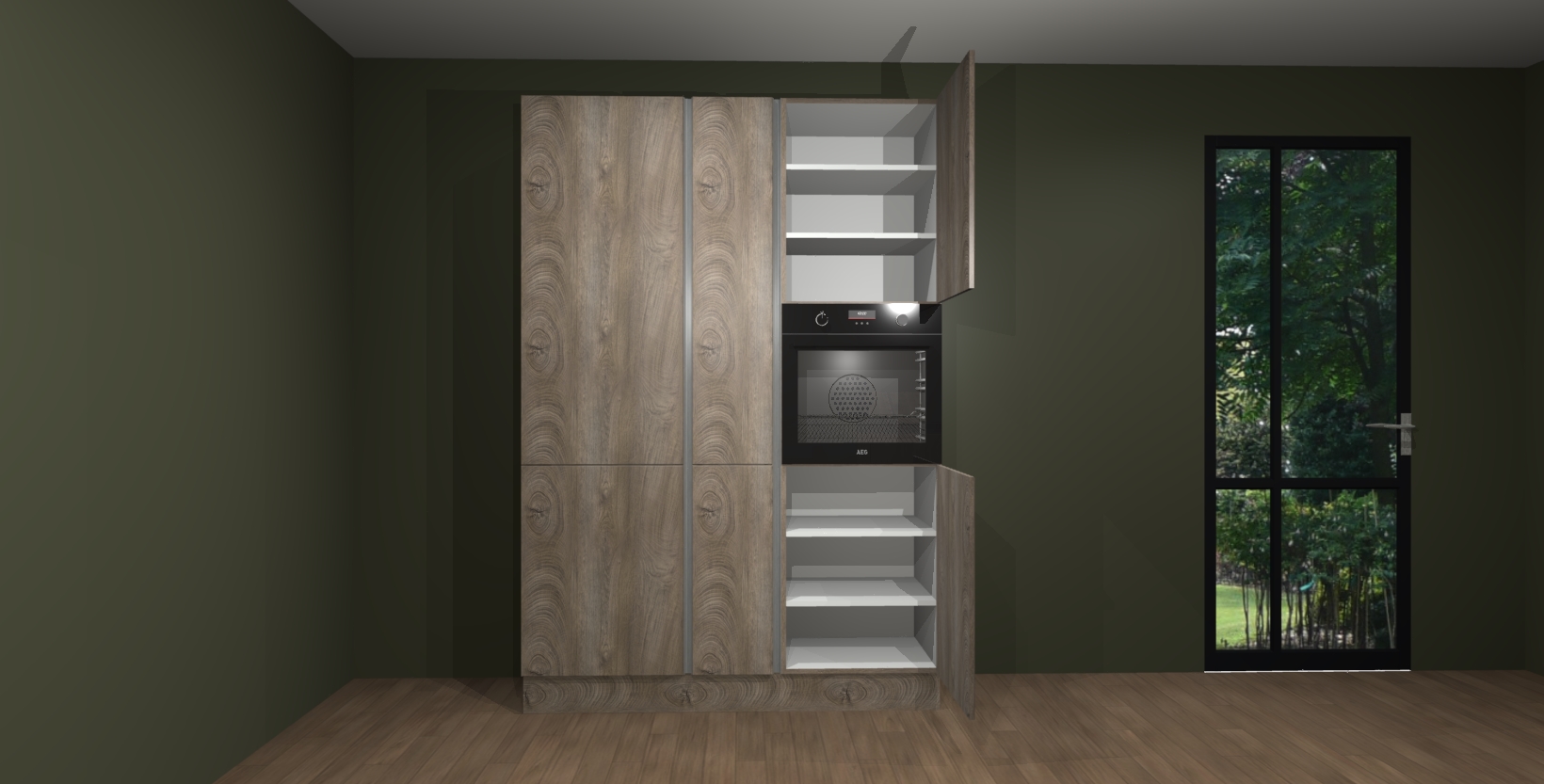 Met een modern, tijdloos design en ruime opslagruimte, zult u zich in no-time thuis voelen in uw nieuwe keuken. Uw leven wordt eenvoudiger met de soft-close deuren die voor het ultieme stille comfort zorgen - geen geluid dat u stoort terwijl u kookt. Ook is de keuken voorzien van 5 ingebouwde apparaten: een oven, inductie kookplaat, afzuigkap, vaatwasser en koelkast. Deze kunnen gemakkelijk na bestelling worden bijgewerkt naar AEG - waardoor uw luxe ervaring compleet is.