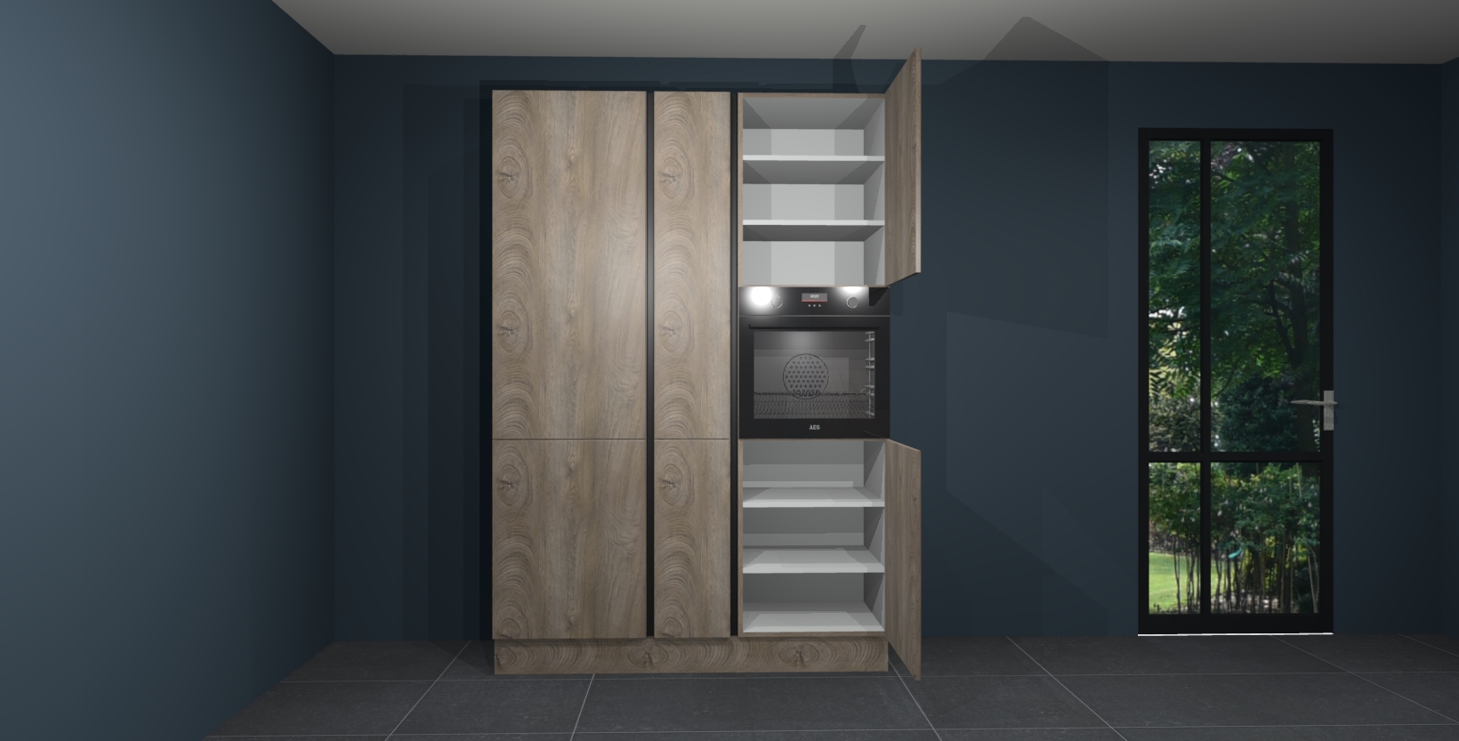 Met een modern, tijdloos design en ruime opslagruimte, zult u zich in no-time thuis voelen in uw nieuwe keuken. Uw leven wordt eenvoudiger met de soft-close deuren die voor het ultieme stille comfort zorgen - geen geluid dat u stoort terwijl u kookt. Ook is de keuken voorzien van 5 ingebouwde apparaten: een oven, inductie kookplaat, afzuigkap, vaatwasser en koelkast. Deze kunnen gemakkelijk na bestelling worden bijgewerkt naar AEG - waardoor uw luxe ervaring compleet is.