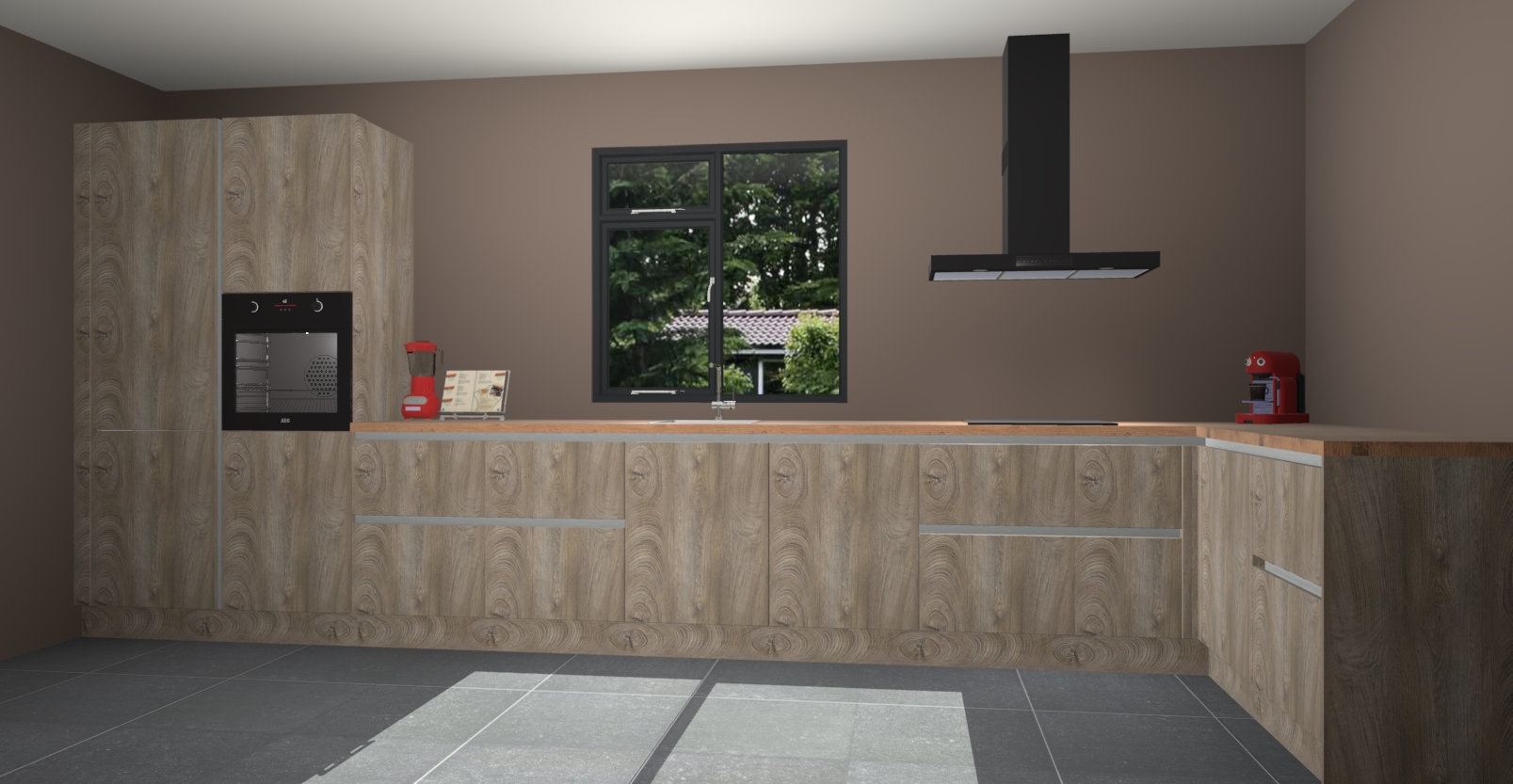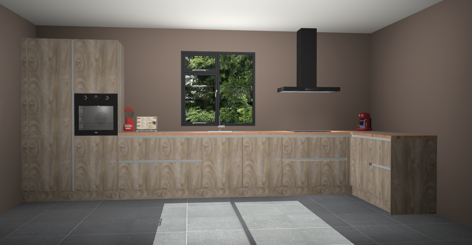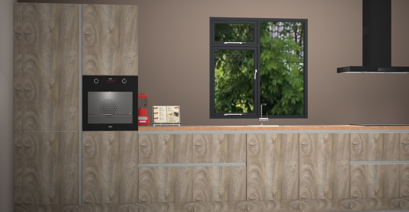 De Cantaro eiken keuken Lille wordt geleverd met vijf inbouwapparaten - een oven, inductiekookplaat, afzuigkap, vaatwasser en koelkast. Maar dat is nog niet alles! Na bestelling kunnen deze apparaten eenvoudig worden geüpgraded naar premium AEG-apparatuur. Bovendien is er zelfs de optie om de oven te vervangen door een combimagnetron of uw inductiekookplaat te vervangen door een kookplaat met geïntegreerde afzuiging.