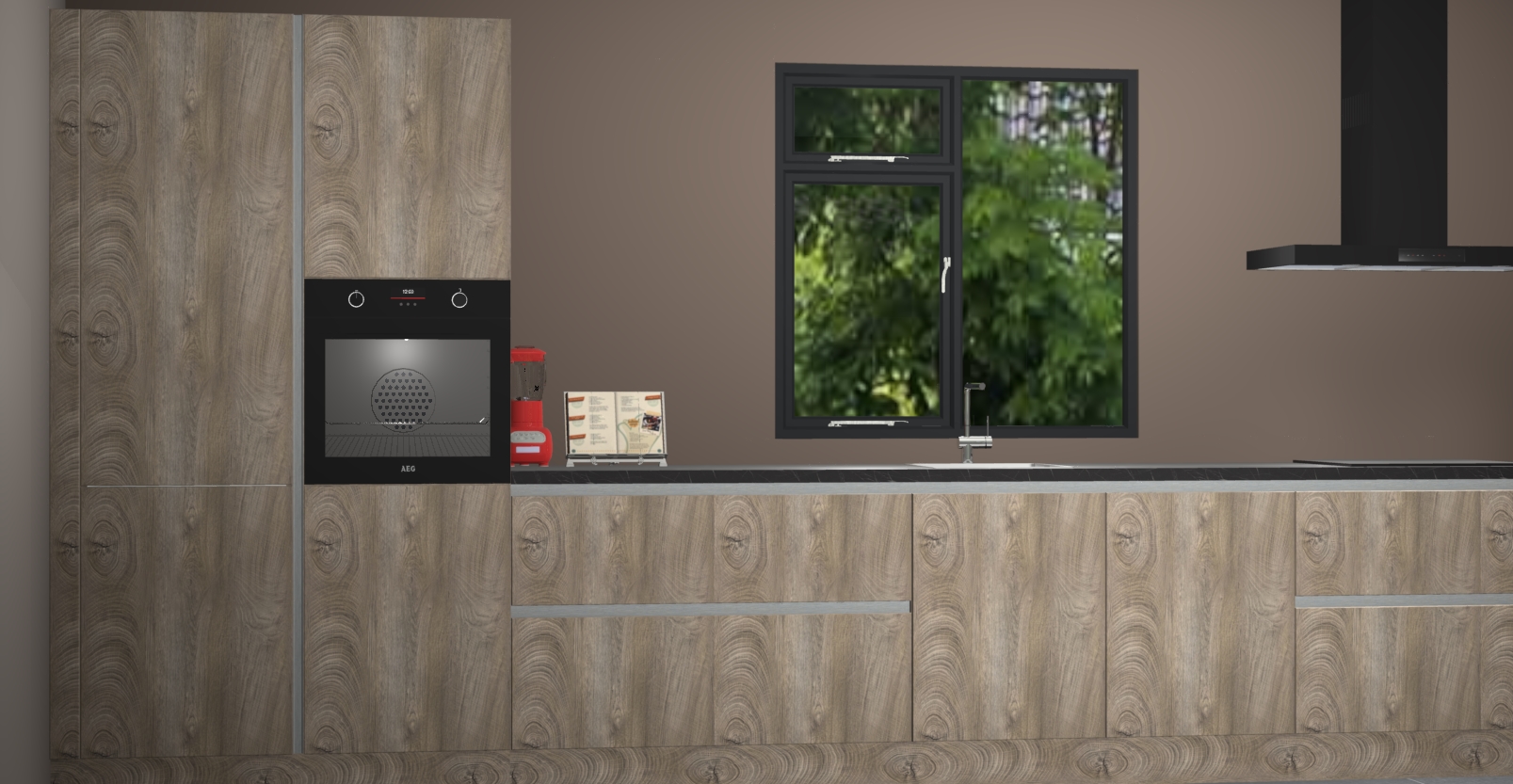 De Cantaro eiken keuken Lille wordt geleverd met vijf inbouwapparaten - een oven, inductiekookplaat, afzuigkap, vaatwasser en koelkast. Maar dat is nog niet alles! Na bestelling kunnen deze apparaten eenvoudig worden geüpgraded naar premium AEG-apparatuur. Bovendien is er zelfs de optie om de oven te vervangen door een combimagnetron of uw inductiekookplaat te vervangen door een kookplaat met geïntegreerde afzuiging.