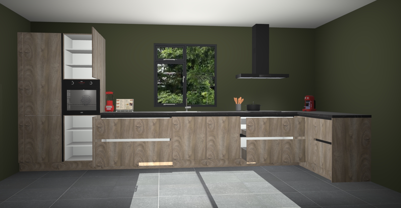 Wilt u uw keuken upgraden en de perfecte moderne toets geven? Kijk dan niet verder dan de Cantaro eiken keuken Lille. Deze mega moderne keuken straalt warmte en sfeer uit en is daarmee de perfecte aanvulling voor elke ruimte.