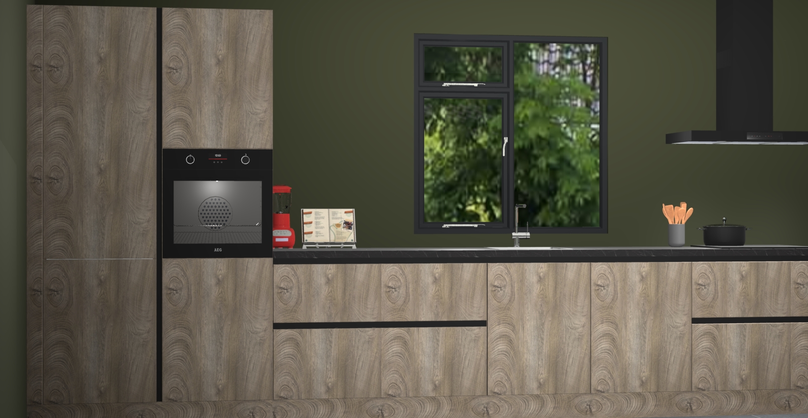 De Cantaro eiken keuken Lille wordt geleverd met vijf inbouwapparaten - een oven, inductiekookplaat, afzuigkap, vaatwasser en koelkast. Maar dat is nog niet alles! Na bestelling kunnen deze apparaten eenvoudig worden geüpgraded naar premium AEG-apparatuur. Bovendien is er zelfs de optie om de oven te vervangen door een combimagnetron of uw inductiekookplaat te vervangen door een kookplaat met geïntegreerde afzuiging.