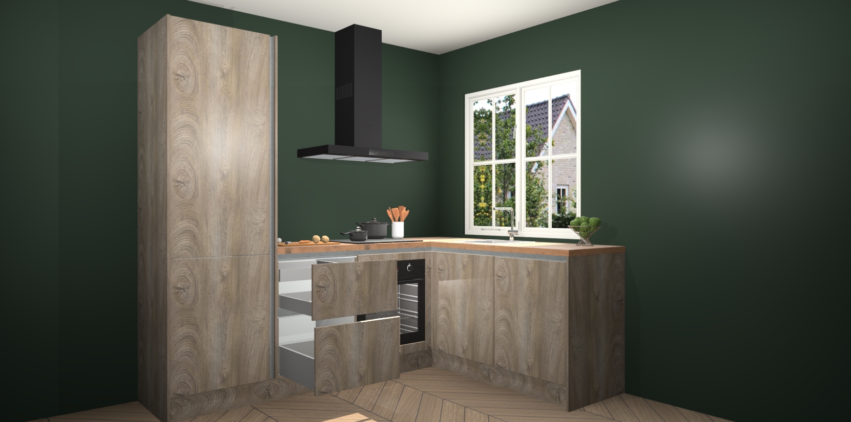 De Cantaro Eiken greeploze keuken Linz is de perfecte keuze voor uw nieuwe moderne en tijdloze keuken. Ga voor moderne en tijdloze elegantie in uw keuken. De prachtige hoekkeuken biedt een verfrissende kijk op de manier waarop we ons vertrouwde keukenontwerp kunnen aanpassen in een nieuwe stijl.  Één blik om alles te zien: zo mooi dat het bijna magisch lijkt.
