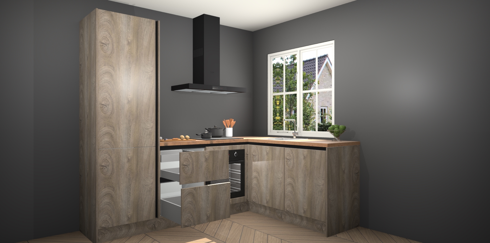 Het grote voordeel is dat uw Cantaro Eiken greeploze keuken Linz wordt geleverd met een beperkte levertijd van slechts 7 weken! Daarom moet u er snel bij zijn; want als u dit fantastische meubilair mist, kan niets anders dan spijt voelen. Ga direct aan de slag met uw droomkeuken door nu de Cantaro Eiken greeploze keuken Linz te bestellen - duizend woorden plaatjes in één woord: perfectie.