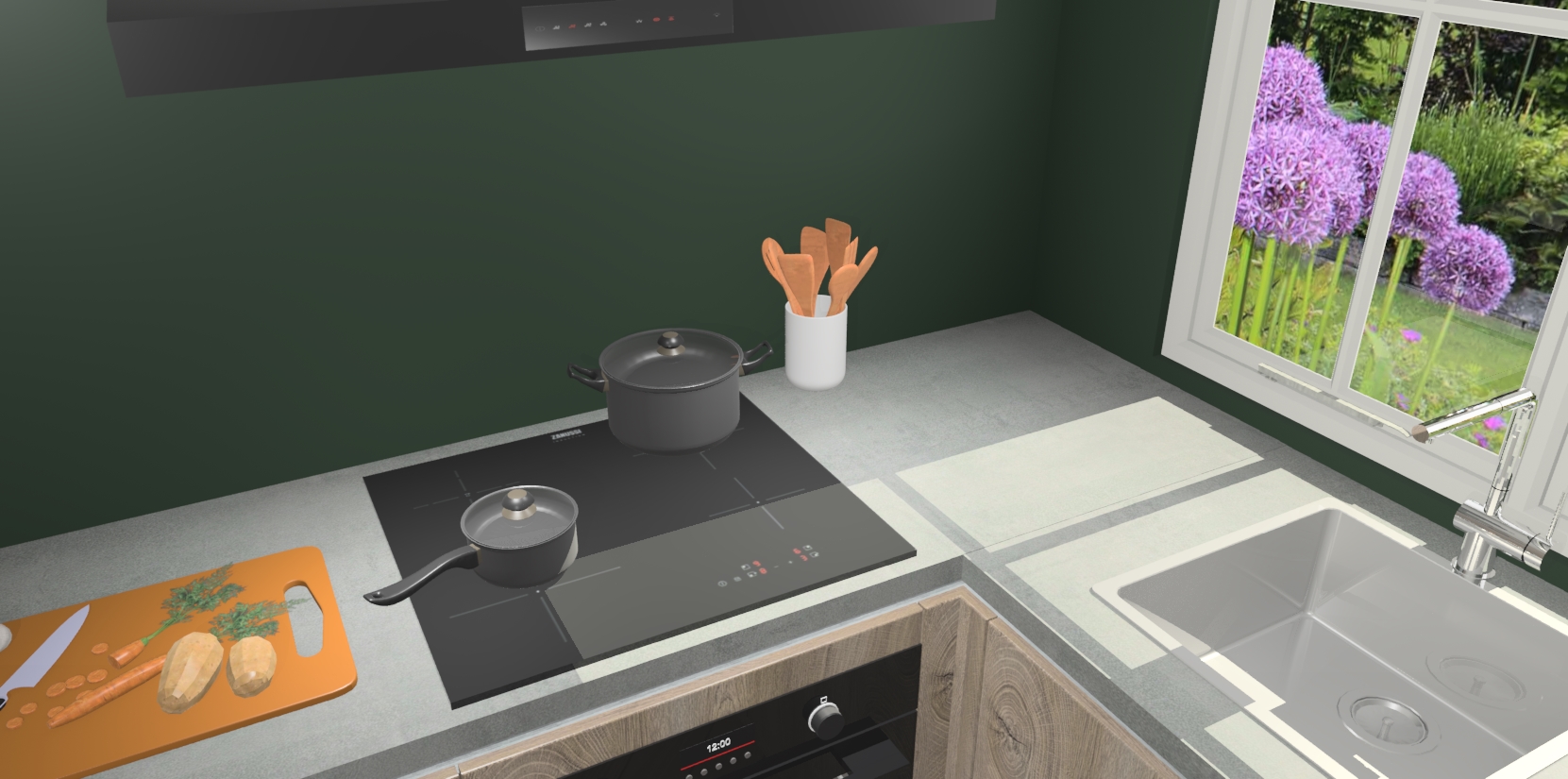 - Uitsparing van kookplaat, spoelbak en kraan dient u zelf te verzorgen.