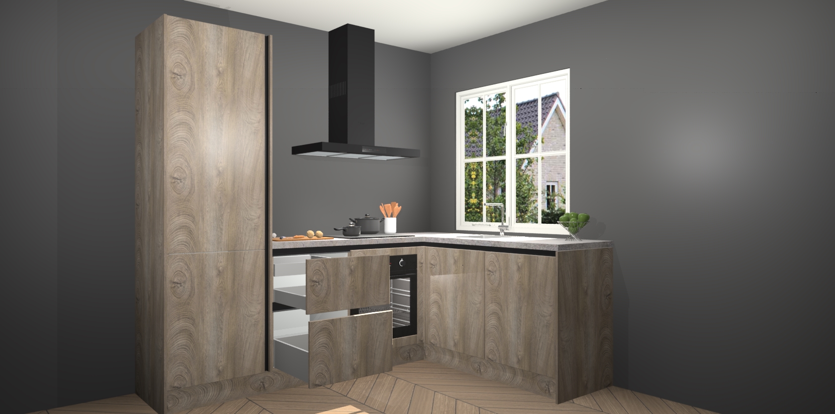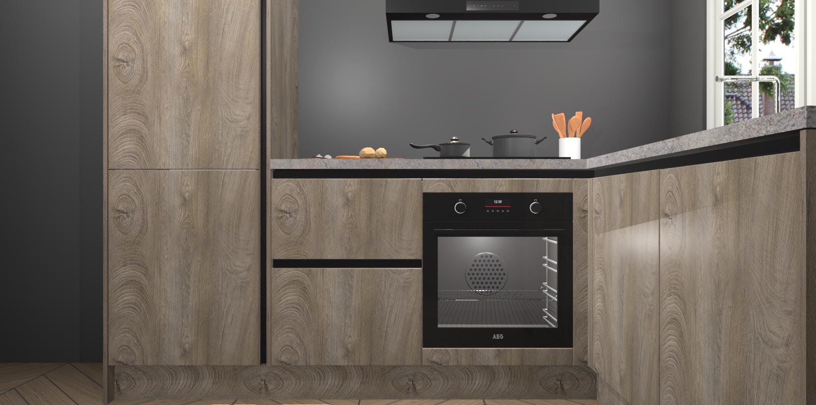 Het grote voordeel is dat uw Cantaro Eiken greeploze keuken Linz wordt geleverd met een beperkte levertijd van slechts 7 weken! Daarom moet u er snel bij zijn; want als u dit fantastische meubilair mist, kan niets anders dan spijt voelen. Ga direct aan de slag met uw droomkeuken door nu de Cantaro Eiken greeploze keuken Linz te bestellen - duizend woorden plaatjes in één woord: perfectie.