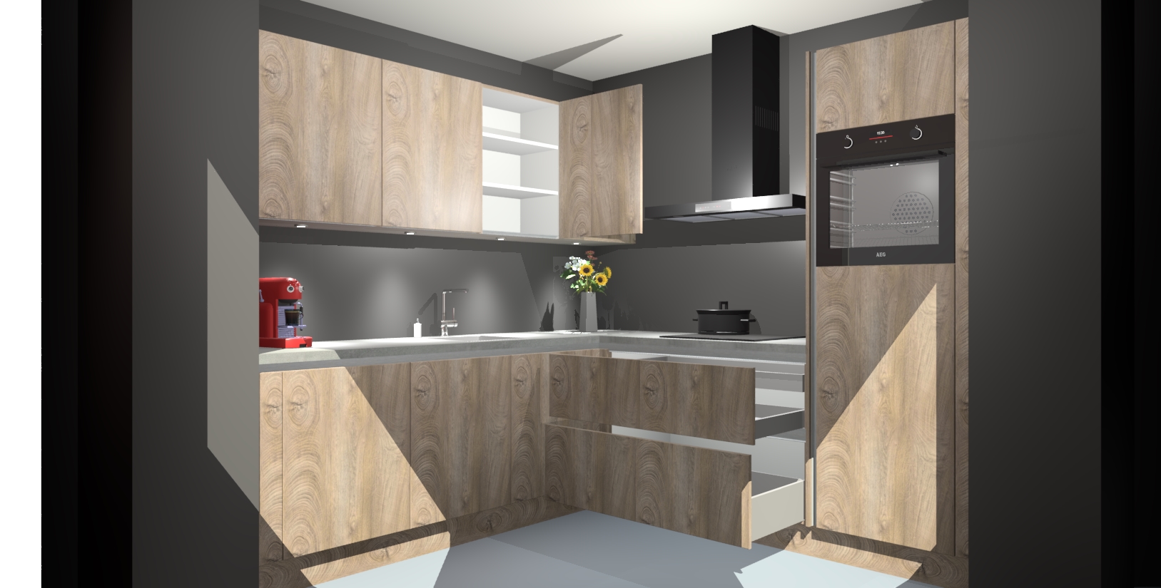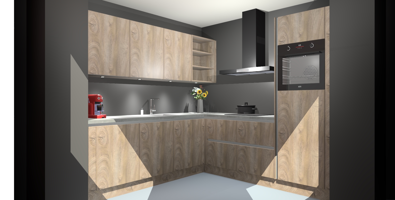 Met een modern, tijdloos design en ruime opslagruimte, zult u zich in no-time thuis voelen in uw nieuwe keuken. Uw leven wordt eenvoudiger met de soft-close deuren die voor het ultieme stille comfort zorgen - geen geluid dat u stoort terwijl u kookt. Ook is de keuken voorzien van 5 ingebouwde apparaten: een oven, inductie kookplaat, afzuigkap, vaatwasser en koelkast. Deze kunnen gemakkelijk na bestelling worden bijgewerkt naar AEG - waardoor uw luxe ervaring compleet is.