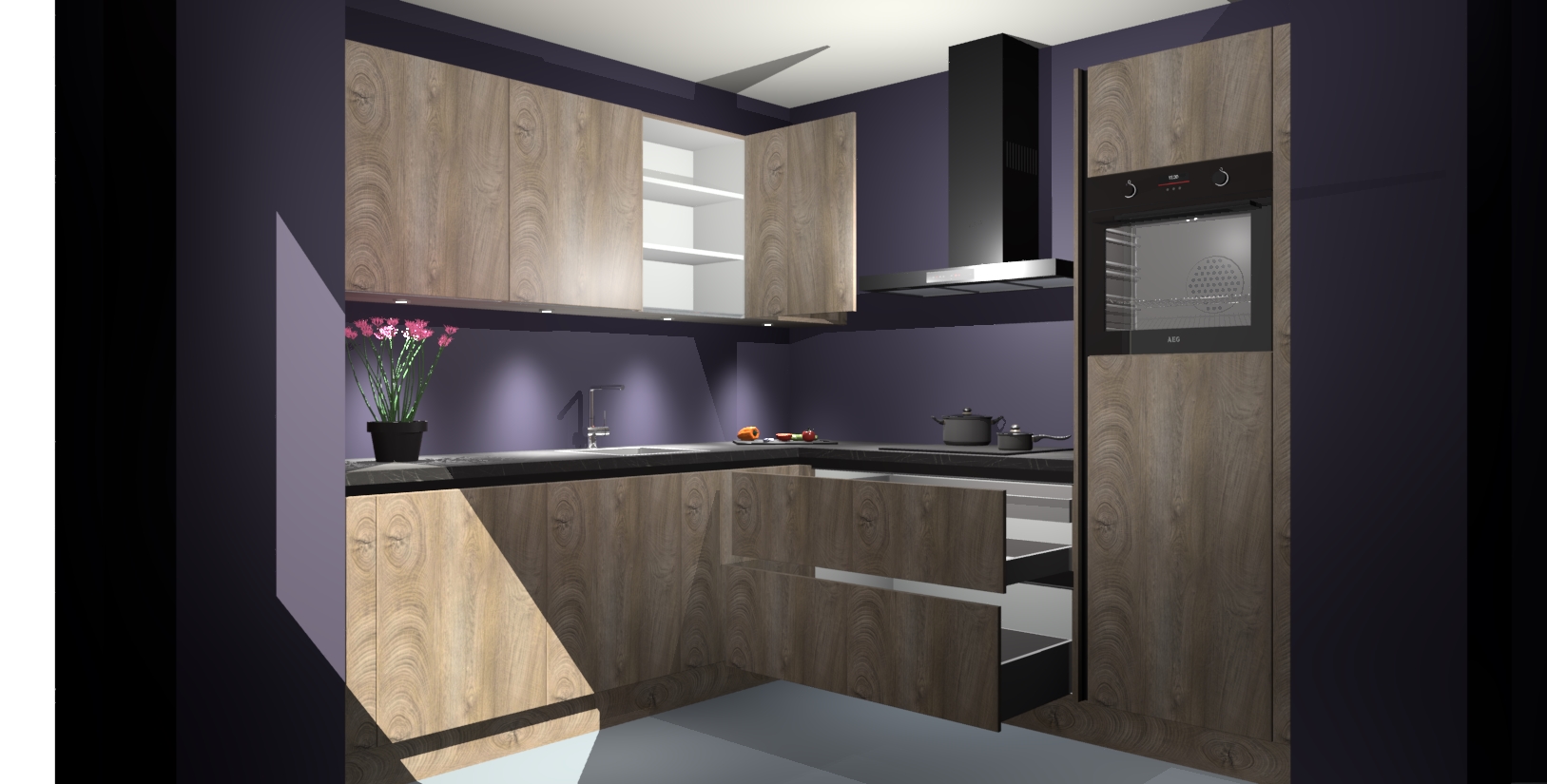Met een modern, tijdloos design en ruime opslagruimte, zult u zich in no-time thuis voelen in uw nieuwe keuken. Uw leven wordt eenvoudiger met de soft-close deuren die voor het ultieme stille comfort zorgen - geen geluid dat u stoort terwijl u kookt. Ook is de keuken voorzien van 5 ingebouwde apparaten: een oven, inductie kookplaat, afzuigkap, vaatwasser en koelkast. Deze kunnen gemakkelijk na bestelling worden bijgewerkt naar AEG - waardoor uw luxe ervaring compleet is.