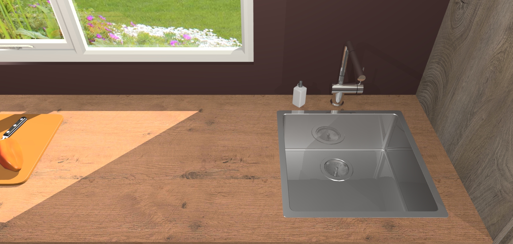 - De spoelbak is nog niet in gevreesd. Dit dient tijdens het werk gedaan te worden