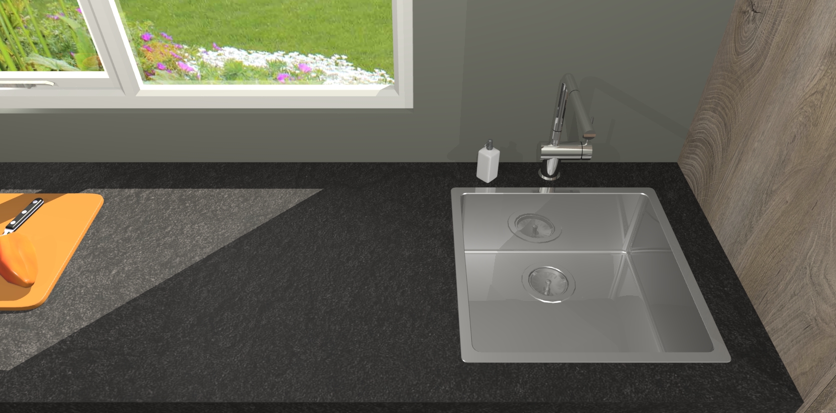 - De spoelbak is nog niet in gevreesd. Dit dient tijdens het werk gedaan te worden