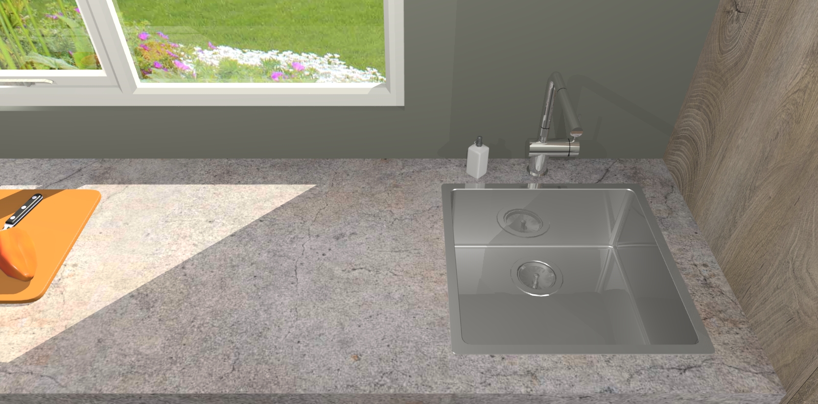 - De spoelbak is nog niet in gevreesd. Dit dient tijdens het werk gedaan te worden