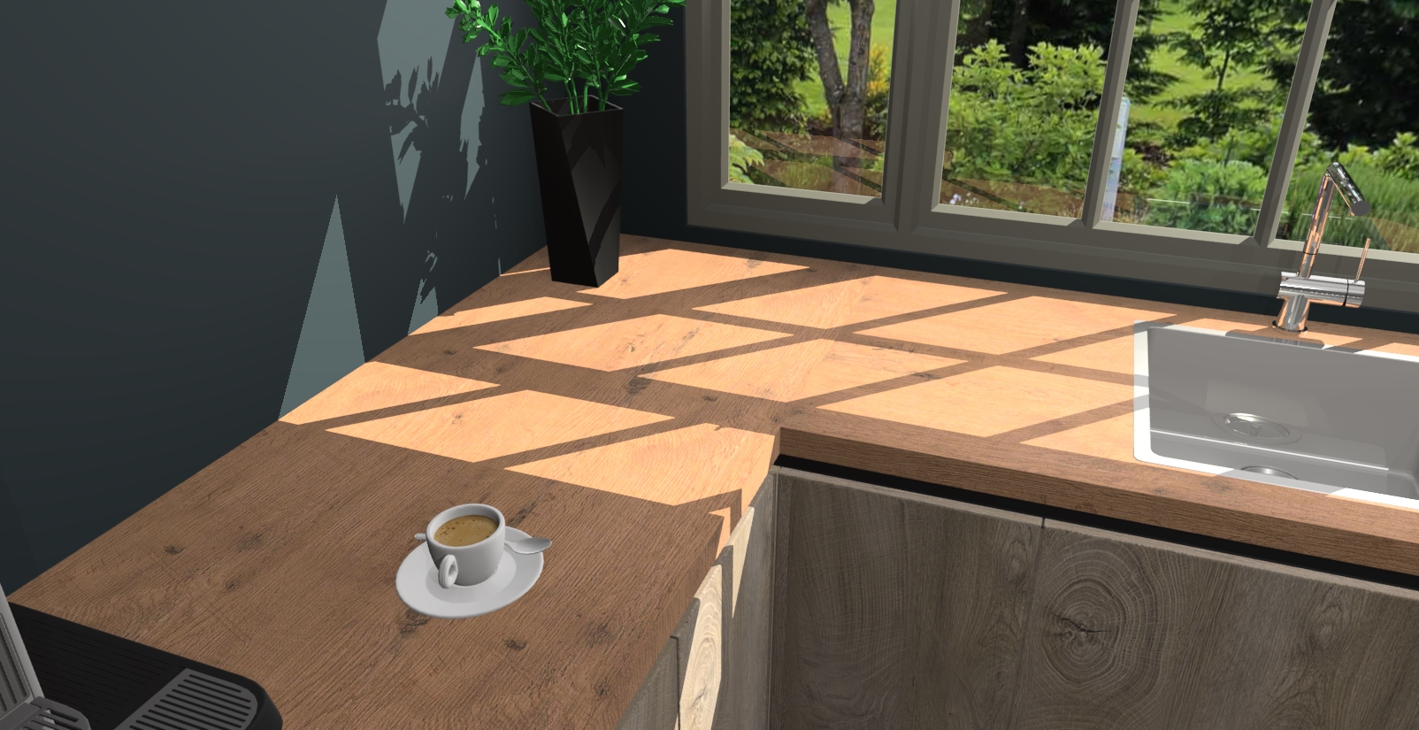 - Bij een hoekwerkblad zijn de hoeken in gevreesd en op maat gemaakt