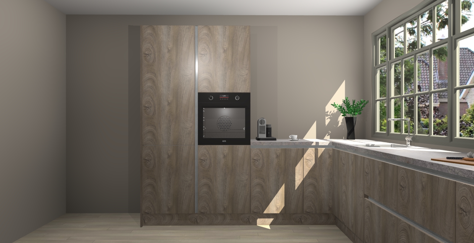 Heeft u nog apparatuur nodig? Geen probleem: de Cantaro Eiken greeploze keuken Malaga bevat vijf ingebouwde apparaten - een oven, inductiekookplaat, afzuigkap, vaatwasser en koelkast - die gemakkelijk kunnen worden bijgewerkt naar AEG na bestelling. En als dat nog niet genoeg is; onze kasten worden pre-geassembleerd geleverd en zijn verkrijgbaar tegen een vastgeroeste lage prijs! U hoeft nooit meer te zoeken naar goede kwaliteit en service want onze producten hebben echt Duitse kwaliteit.