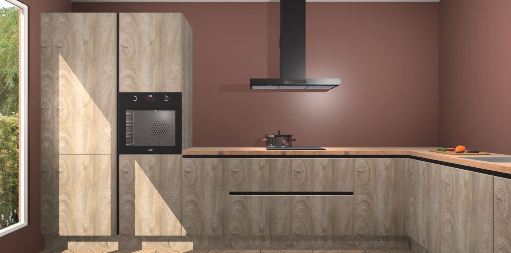 Met een modern, tijdloos design en ruime opslagruimte, zult u zich in no-time thuis voelen in uw nieuwe keuken. Uw leven wordt eenvoudiger met de soft-close deuren die voor het ultieme stille comfort zorgen - geen geluid dat u stoort terwijl u kookt. Ook is de keuken voorzien van 5 ingebouwde apparaten: een oven, inductie kookplaat, afzuigkap, vaatwasser en koelkast. Deze kunnen gemakkelijk na bestelling worden bijgewerkt naar AEG - waardoor uw luxe ervaring compleet is.