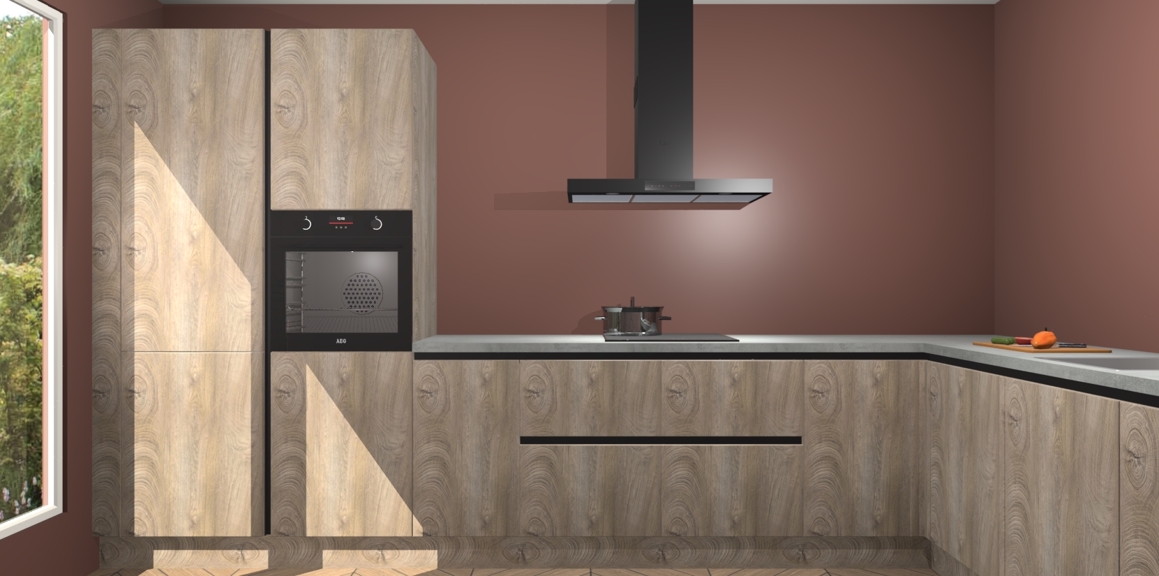 Met een modern, tijdloos design en ruime opslagruimte, zult u zich in no-time thuis voelen in uw nieuwe keuken. Uw leven wordt eenvoudiger met de soft-close deuren die voor het ultieme stille comfort zorgen - geen geluid dat u stoort terwijl u kookt. Ook is de keuken voorzien van 5 ingebouwde apparaten: een oven, inductie kookplaat, afzuigkap, vaatwasser en koelkast. Deze kunnen gemakkelijk na bestelling worden bijgewerkt naar AEG - waardoor uw luxe ervaring compleet is.