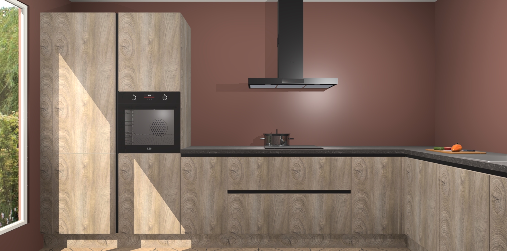 Met een modern, tijdloos design en ruime opslagruimte, zult u zich in no-time thuis voelen in uw nieuwe keuken. Uw leven wordt eenvoudiger met de soft-close deuren die voor het ultieme stille comfort zorgen - geen geluid dat u stoort terwijl u kookt. Ook is de keuken voorzien van 5 ingebouwde apparaten: een oven, inductie kookplaat, afzuigkap, vaatwasser en koelkast. Deze kunnen gemakkelijk na bestelling worden bijgewerkt naar AEG - waardoor uw luxe ervaring compleet is.