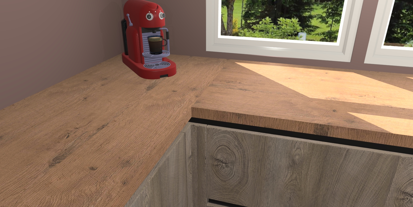 - Bij een hoekwerkblad zijn de hoeken in gevreesd en op maat gemaakt