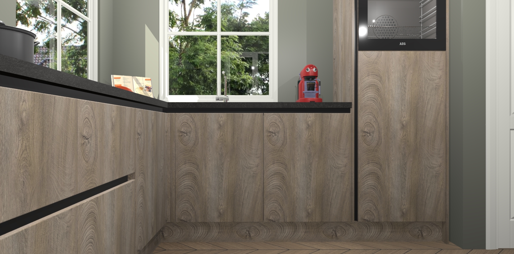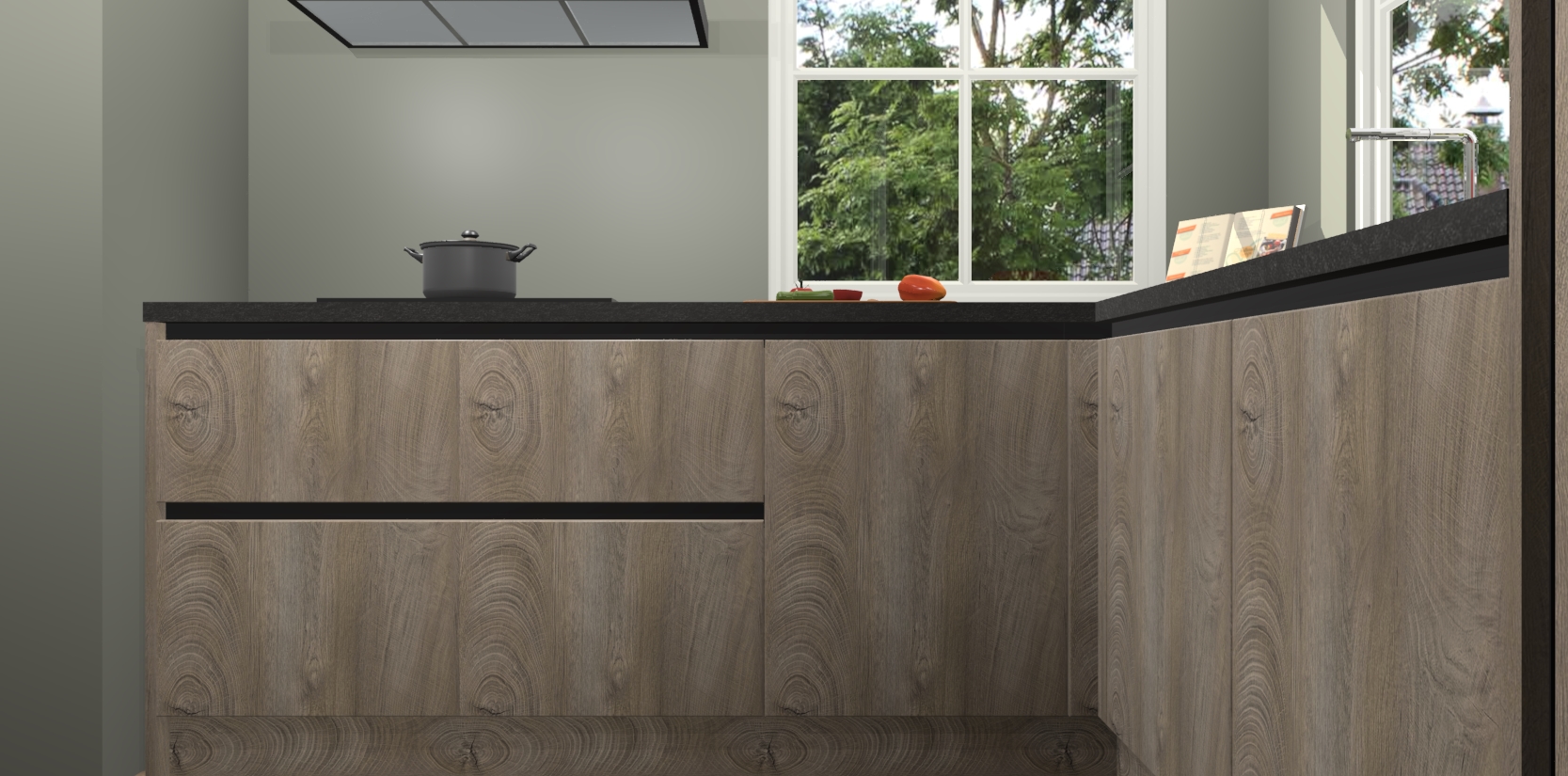 Maak kennis met de Cantaro Eiken greeploze keuken Pai: de perfecte keukenoplossing voor stijlzoekers die streven naar zowel schoonheid als een lange levensduur in hun huis. Dit tijdloze ontwerp is modern en verfijnd, waardoor het een prachtige aanvulling is op elke leefruimte.