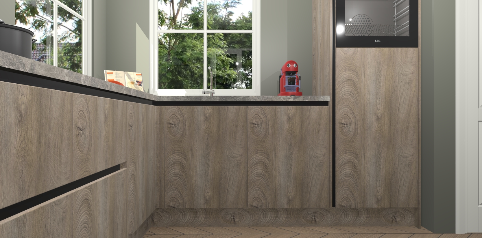 Maak kennis met de Cantaro Eiken greeploze keuken Pai: de perfecte keukenoplossing voor stijlzoekers die streven naar zowel schoonheid als een lange levensduur in hun huis. Dit tijdloze ontwerp is modern en verfijnd, waardoor het een prachtige aanvulling is op elke leefruimte.